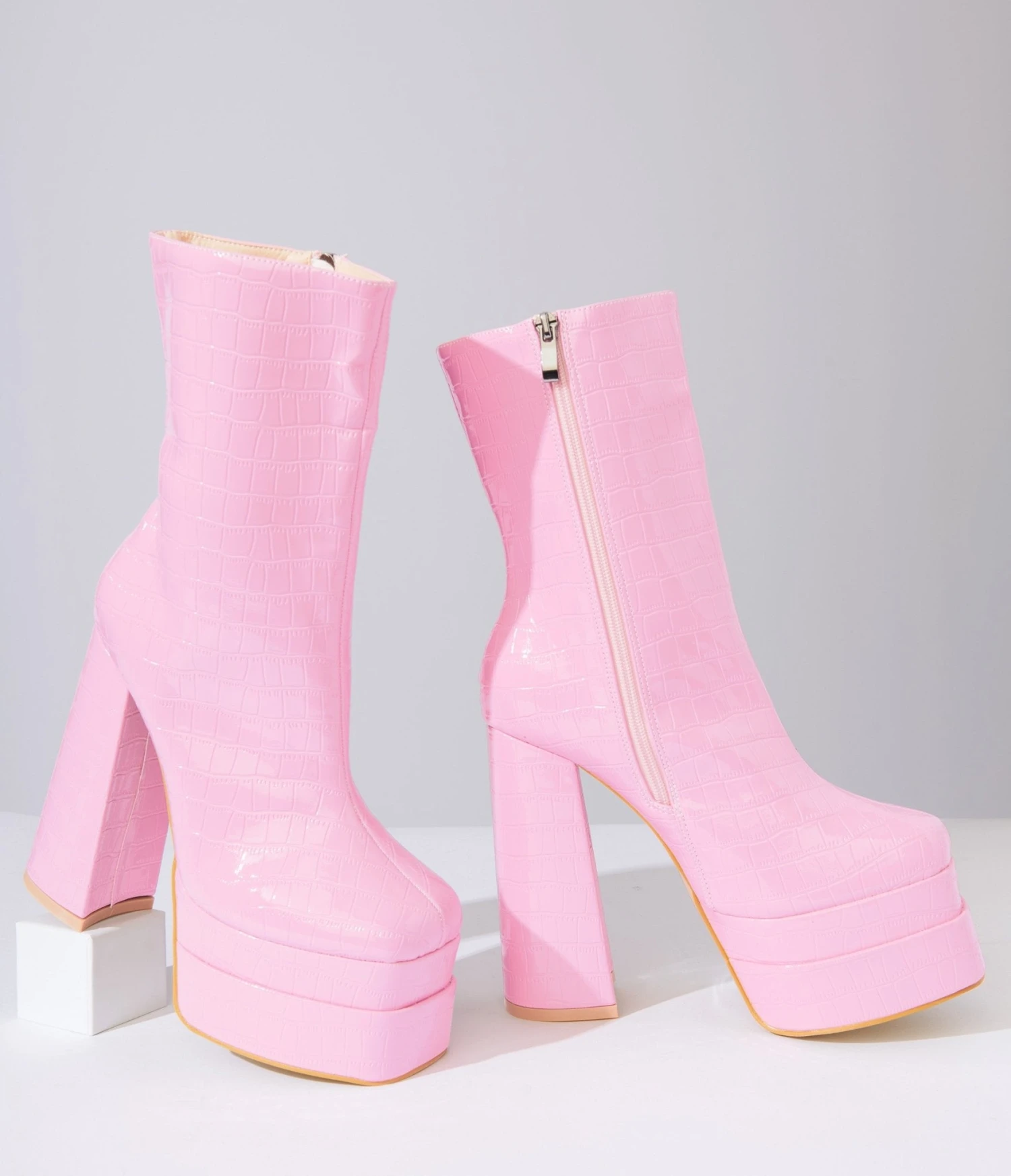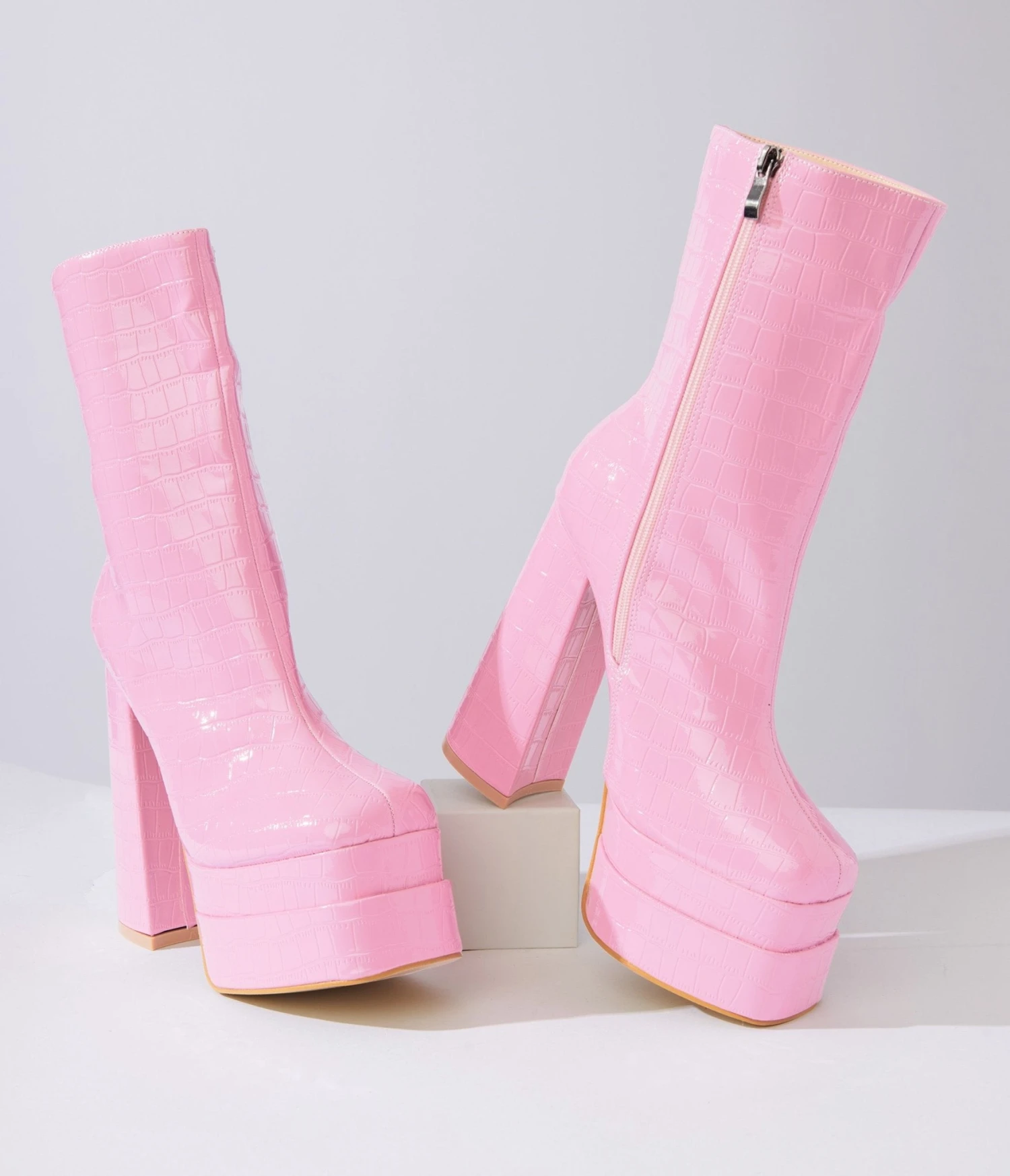 Be the first to review “Baby Pink Reptile Embossed Platform Boots” Cancel reply