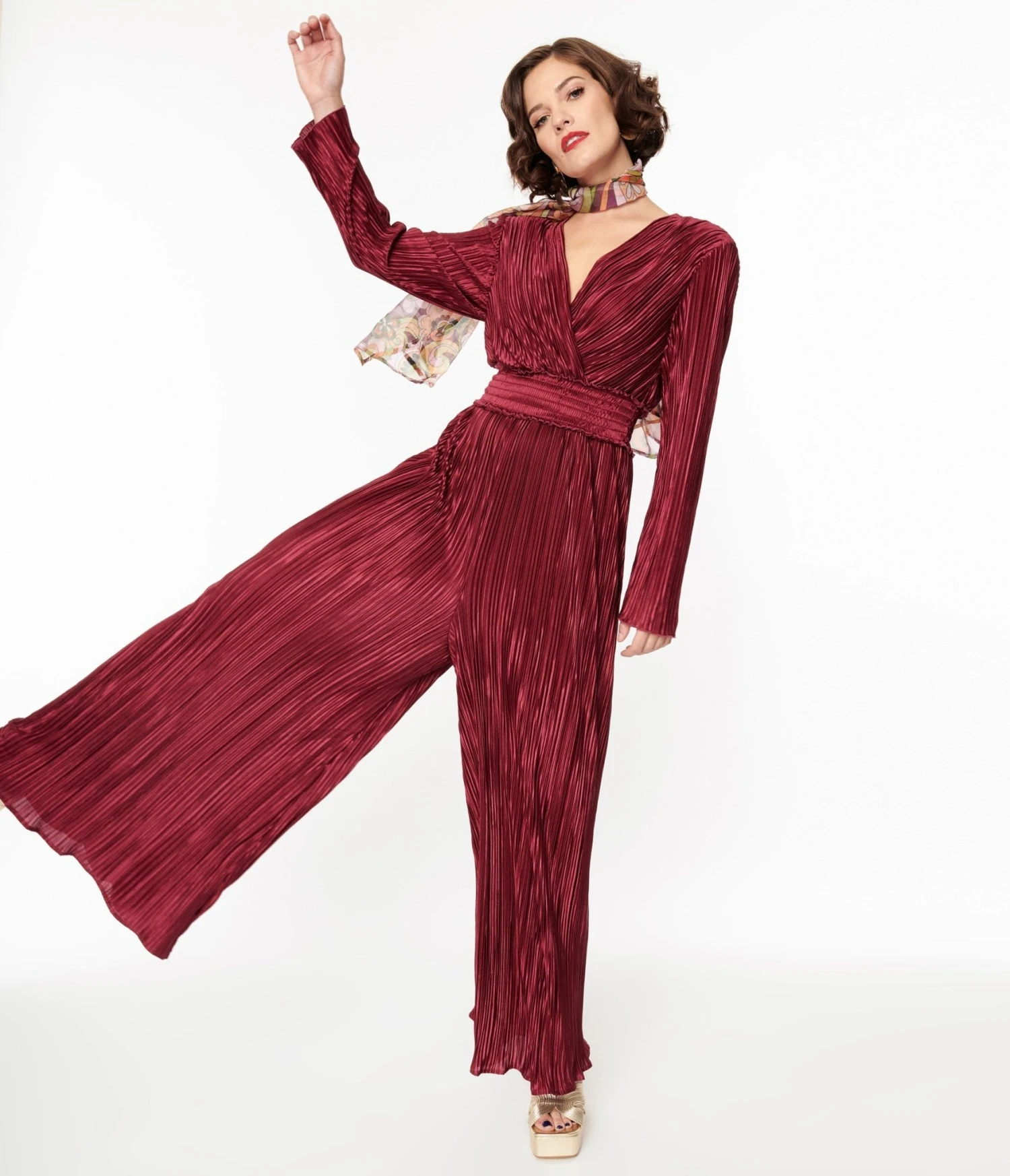 Stay comfortable and look fabulous in this berry pink plisse jumpsuit. The textured plisse fabric is lightweight yet durable, flattering your figure with its surplice neckline and wide smocked waistband. Perfect for any occasion, the sleek design is complete with long sleeves, back neck button closure, and wide leg.