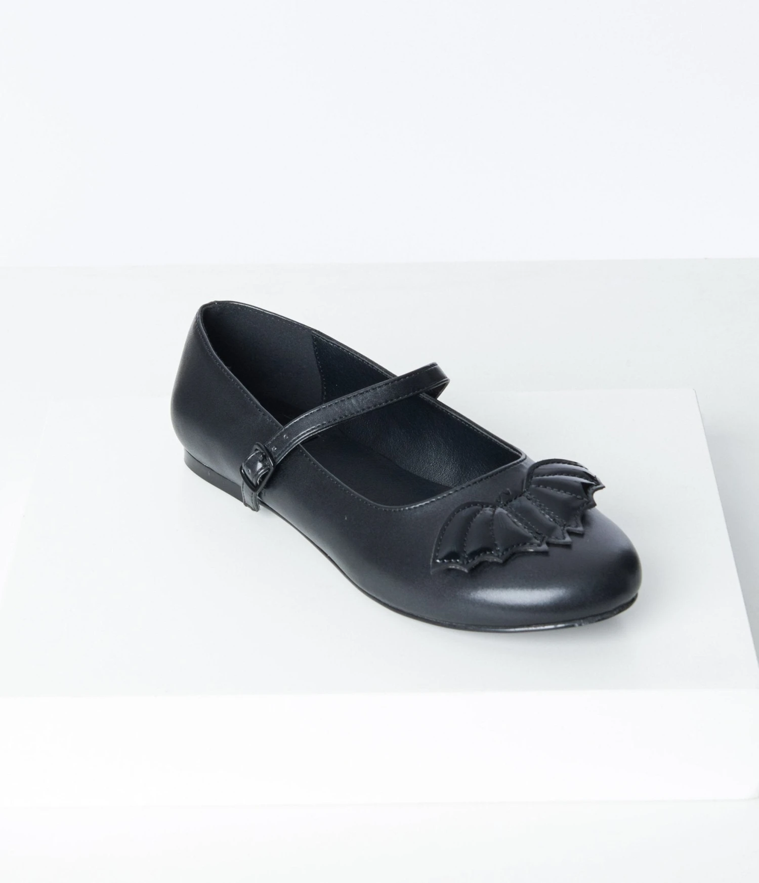 Crafted from a darling black leatherette, these flats feature a striking patent leatherette bat on the toe, adding a touch of mystery to your outfit. The adjustable buckle strap ensures a perfect fit for all-day comfort. Embrace your inner nocturnal spirit and make heads turn wherever you go!