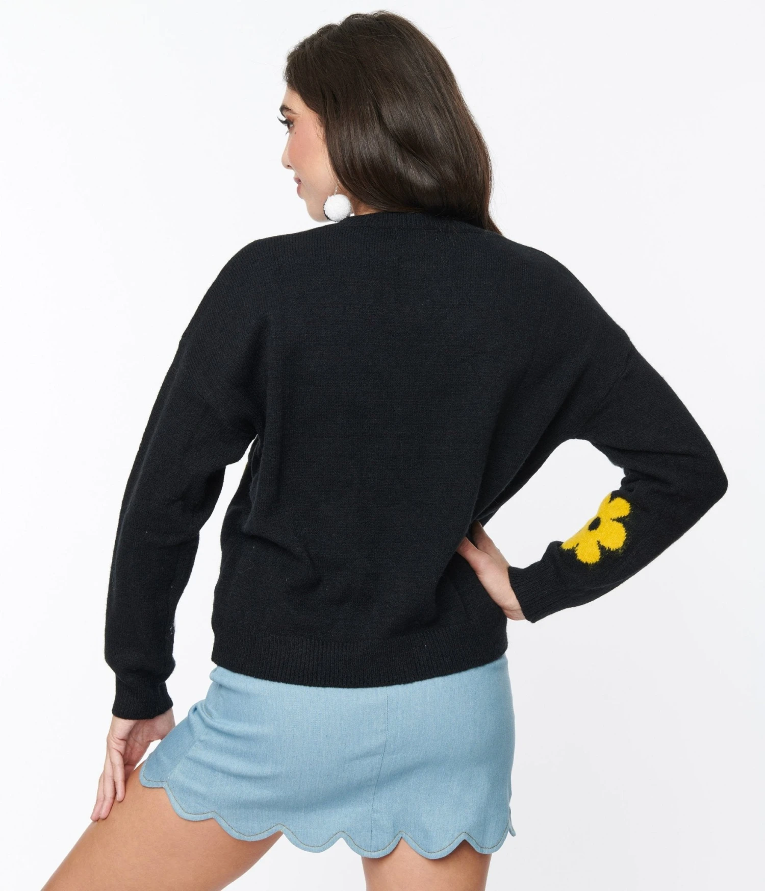 This statement piece combines the classic allure of a black knit sweater with an exciting twist – stunning multicolored daisies scattered throughout. With its long sleeves and cozy crew neckline, this sweater is perfect for those chilly days when you want to make a bold fashion statement.