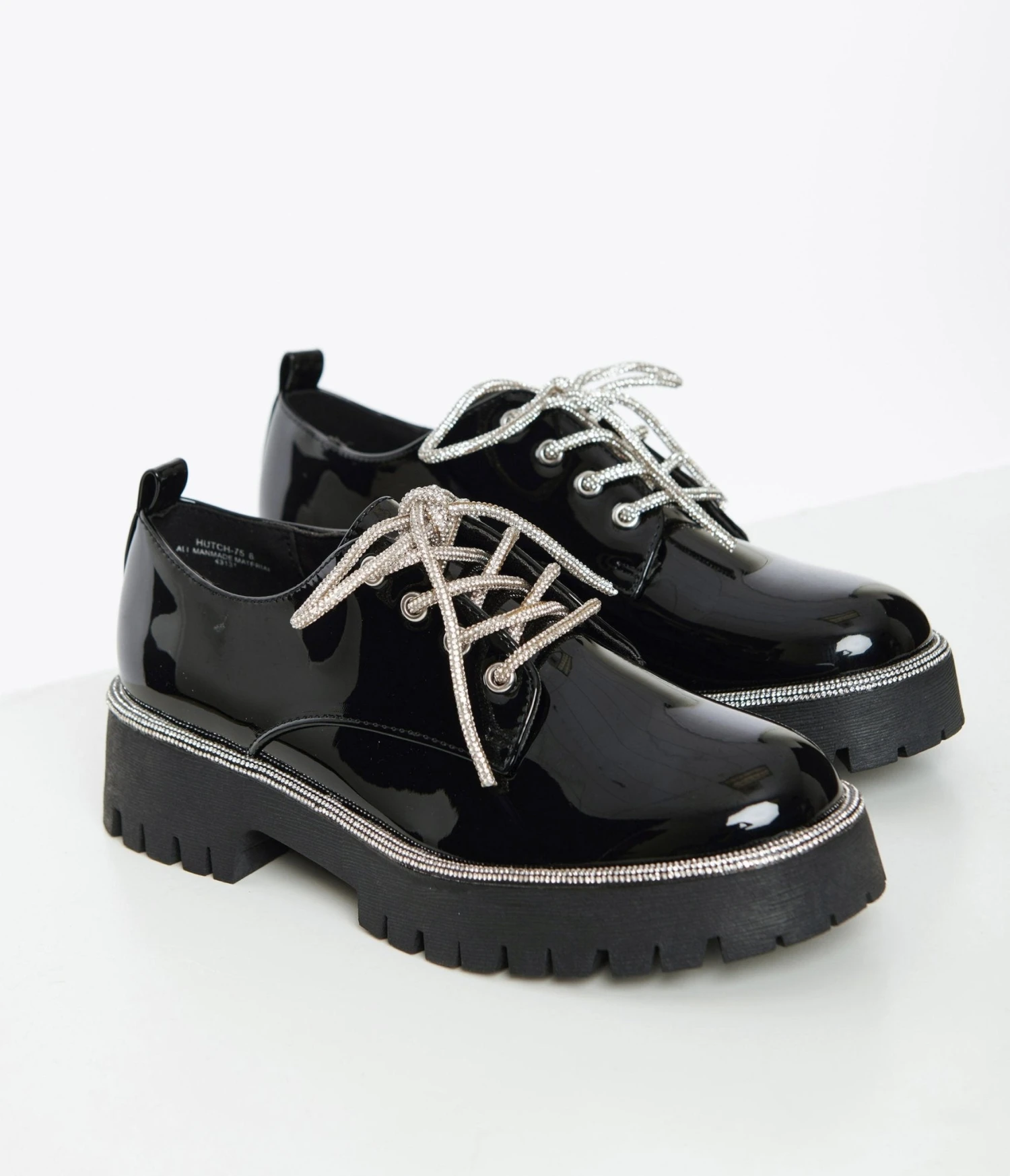 Strut your stuff in style and make heads turn wherever you go. With their sleek black patent finish, silver lace-up design, and oh-so-comfortable cushion insole, these platform oxford shoes are poised to elevate your fashion game to new heights. Complete with a 2 inch boost.