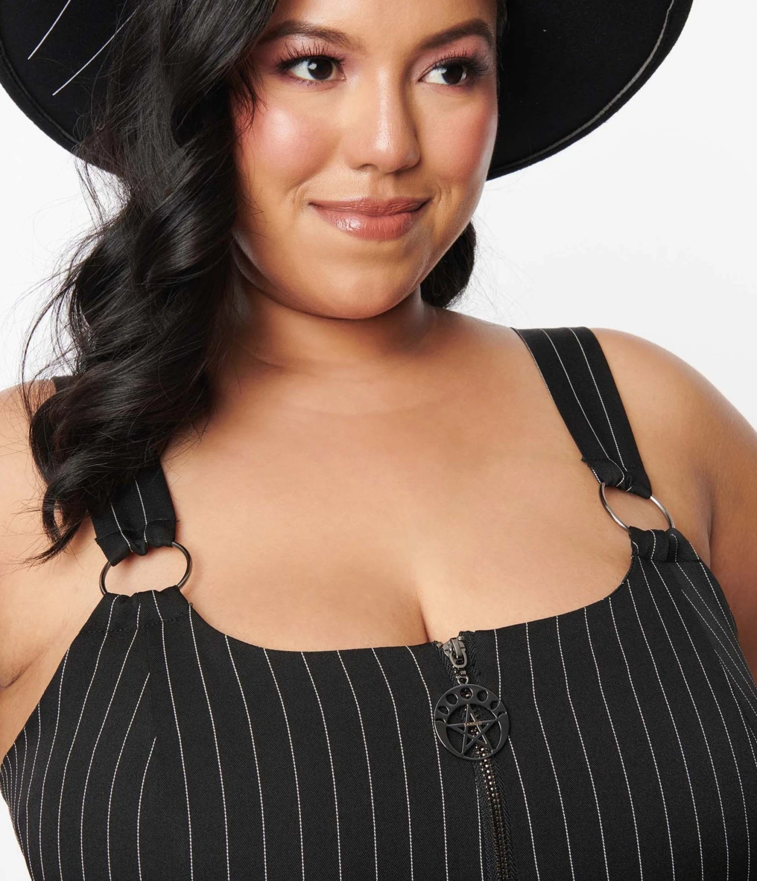 Designed to stun, this shift dress combines classic elegance with contemporary features. The adjustable straps ensure a perfect fit for every body shape, while the front zipper adds a touch of versatility. And it gets better – you’ll love the convenience of the side pockets to keep your essentials close at hand! With its chic scoop neckline and timeless black pinstripe pattern, this dress effortlessly takes you from day to night.
