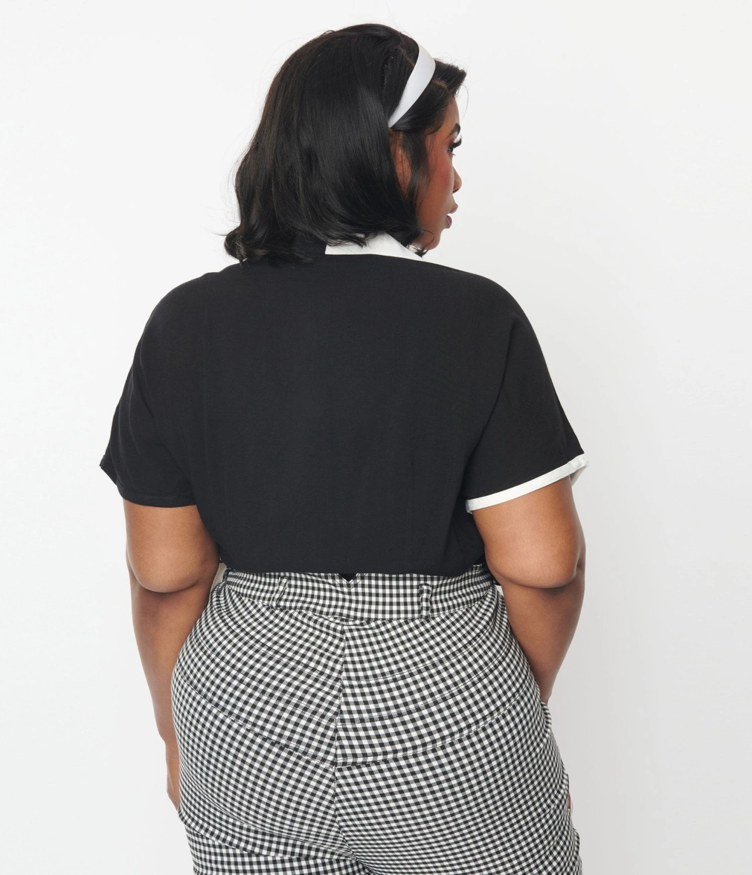 Be the first to review “Black & White Colorblock Bowler Wrap Top” Cancel reply