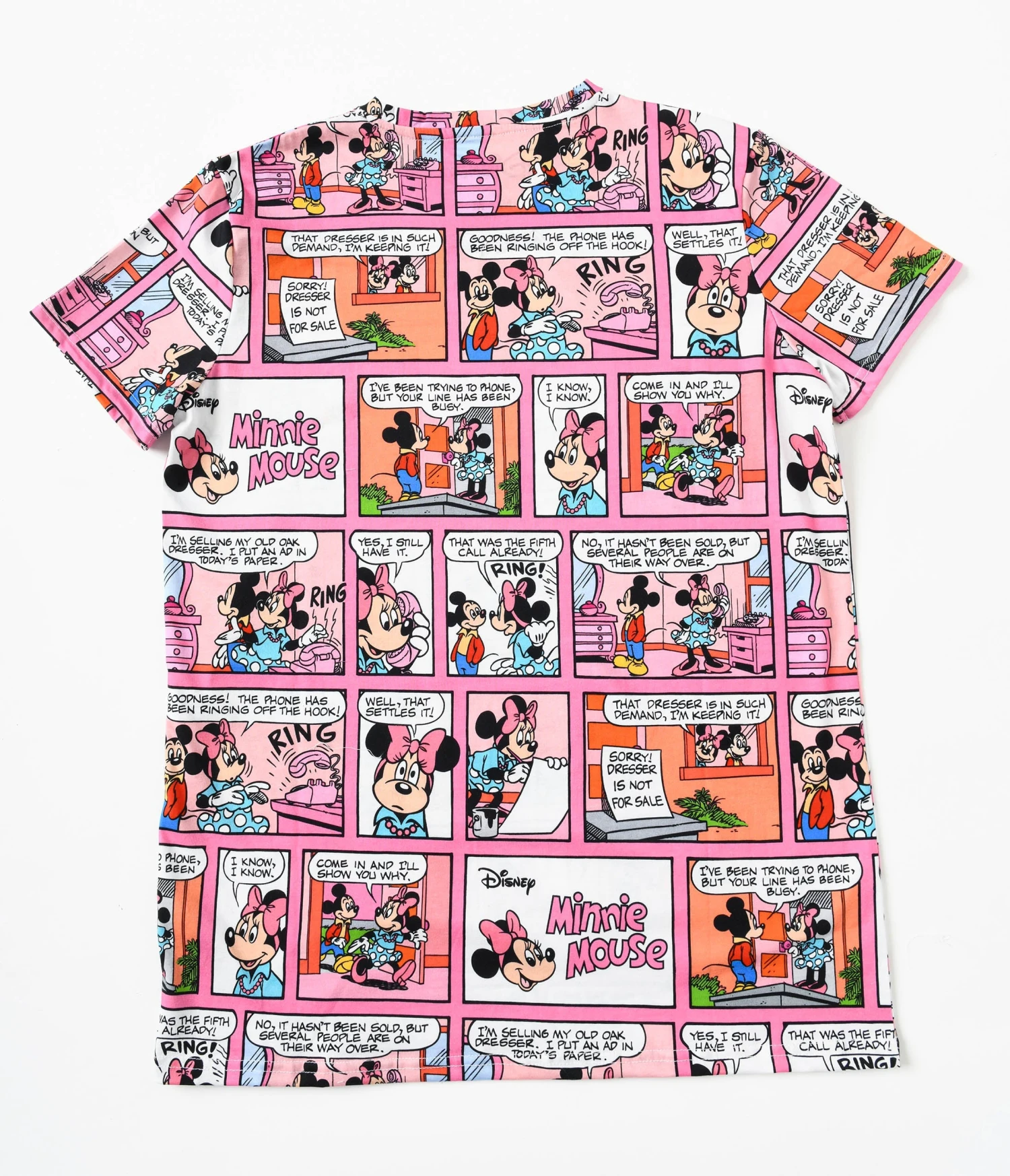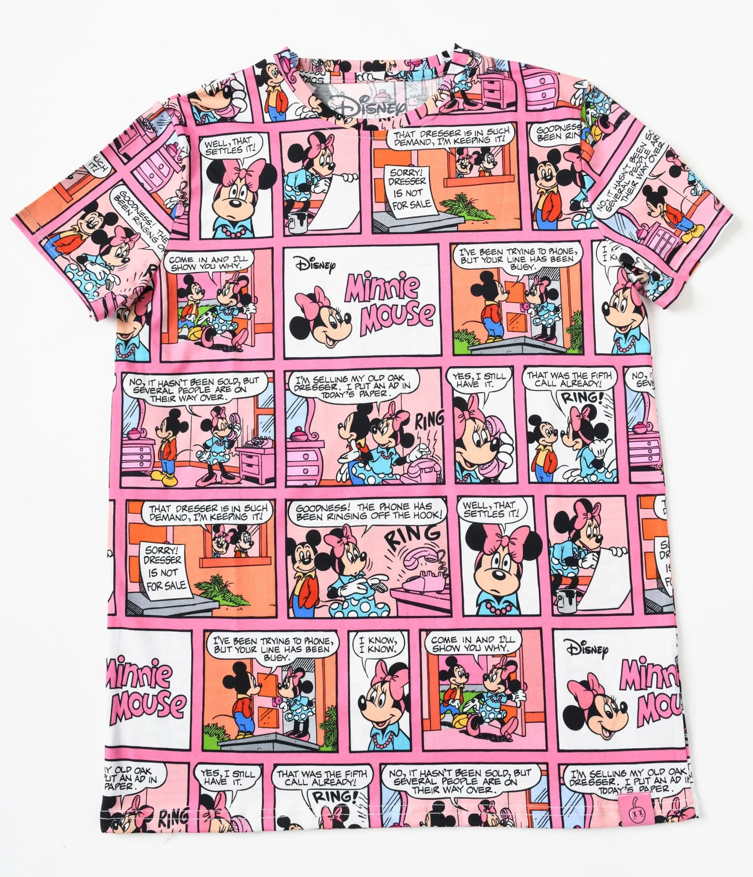 Feast your eyes on this delightful unisex graphic tee from Cakeworthy! With its vibrant pink hue and an irresistible allover print of Minnie Mouse comic panels, this tee will instantly transport you back to the golden age of comics. The comfy crewneck and short sleeves ensure a perfect fit!
