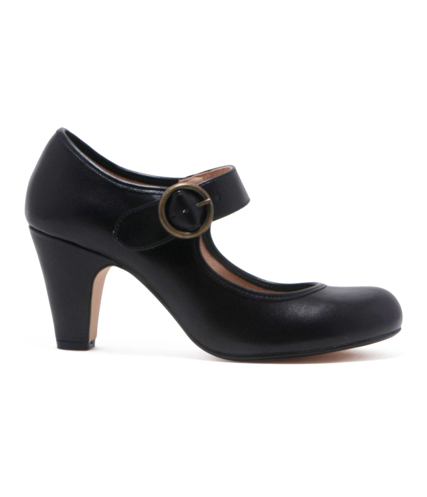 Add some vintage flair to your wardrobe with this charming pair of Mary Jane heels set in a gorgeous black faux leather. The large circular adjustable ankle combined with the rounded toe rewinds the time. Complete with a 3 inch heel.