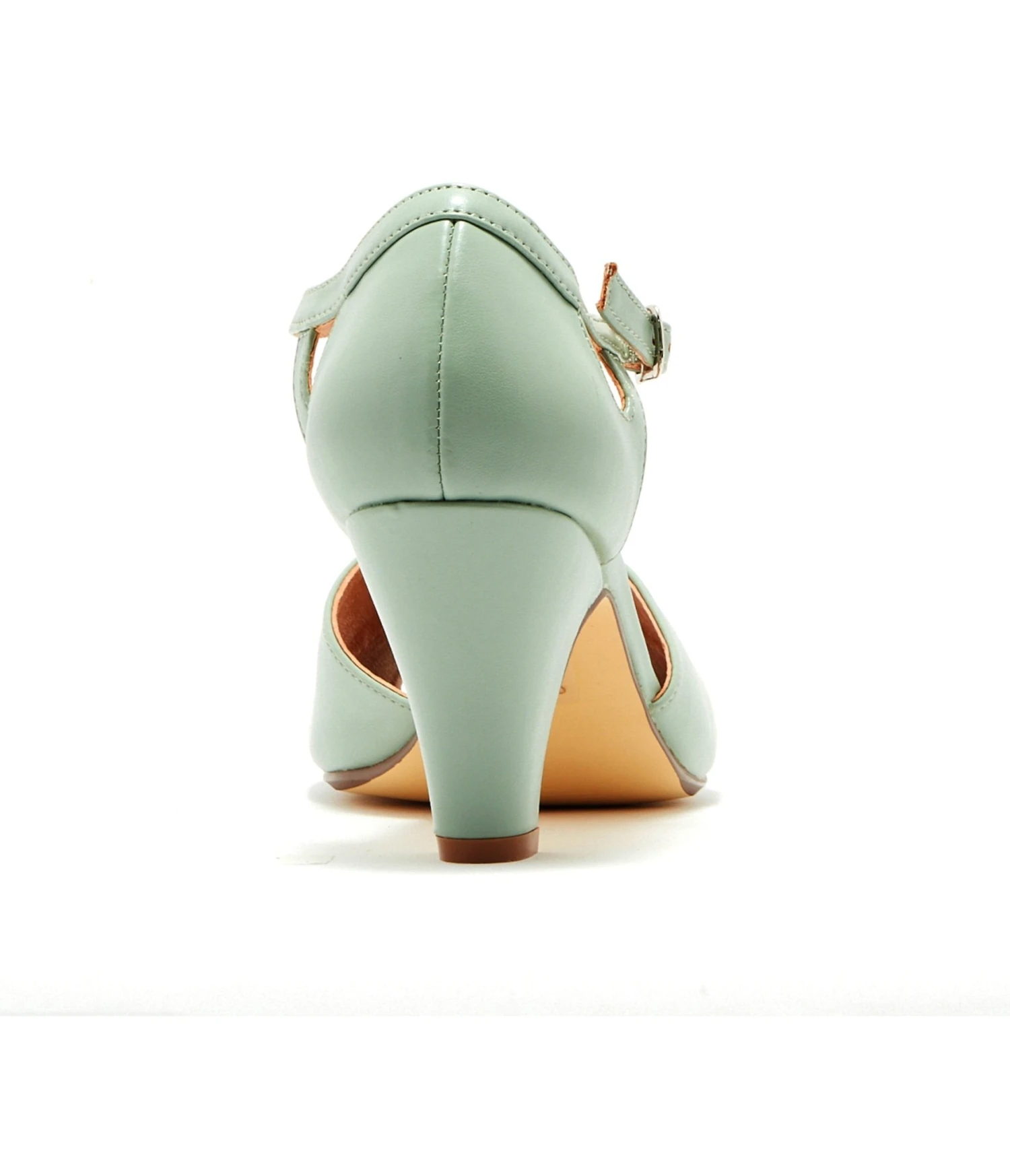 Keep your feet as pretty as can be with these charming vintage-inspired heels set in a gorgeous mint faux leather. The open toe is accentuated by the classic T-strap and secured with an adjustable ankle buckle closure. Complete with a 2.5 inch heel.