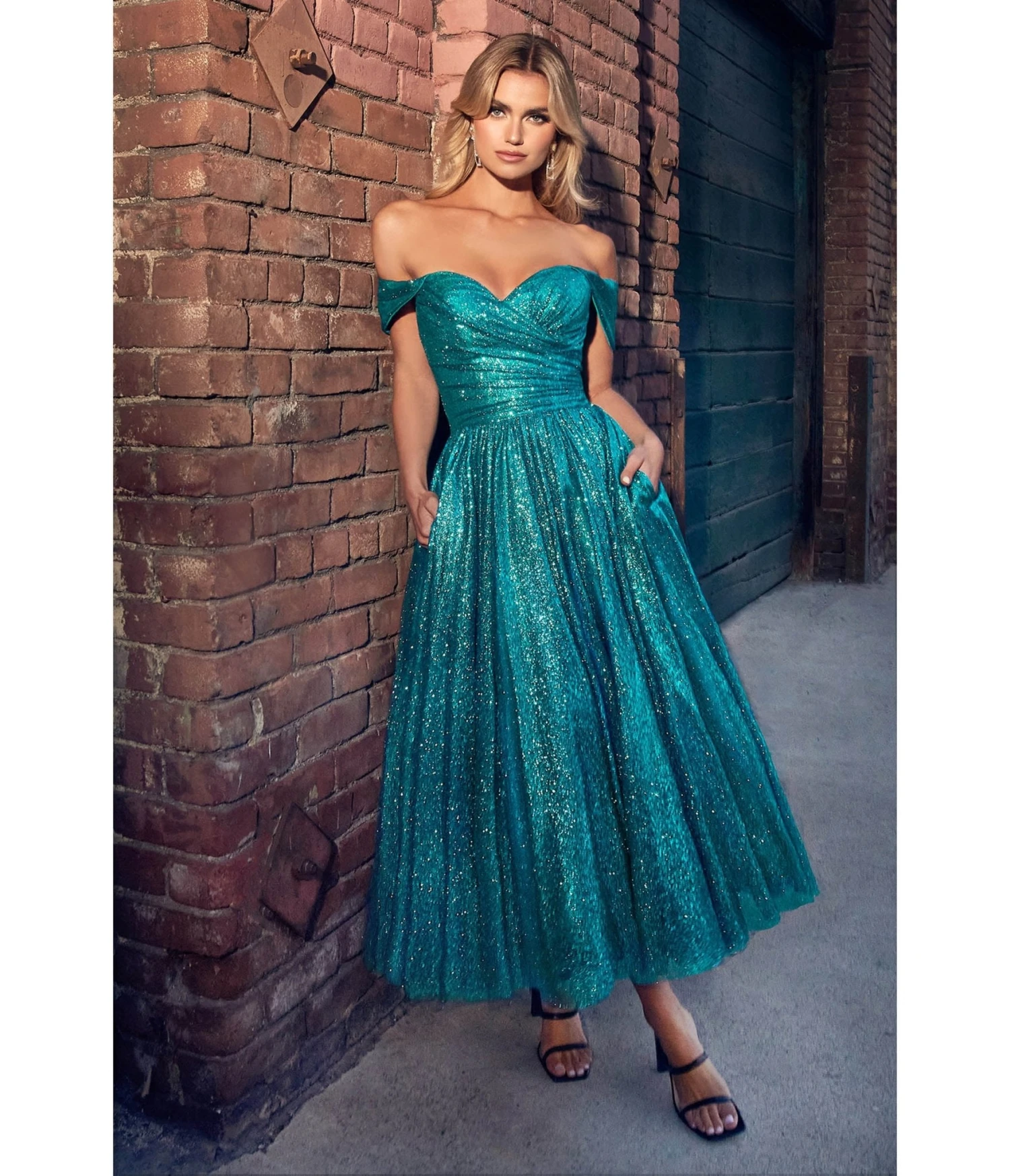 Be the first to review “Cinderella Divine Turquoise Glitter Off The Shoulder Tea Length Dress” Cancel reply