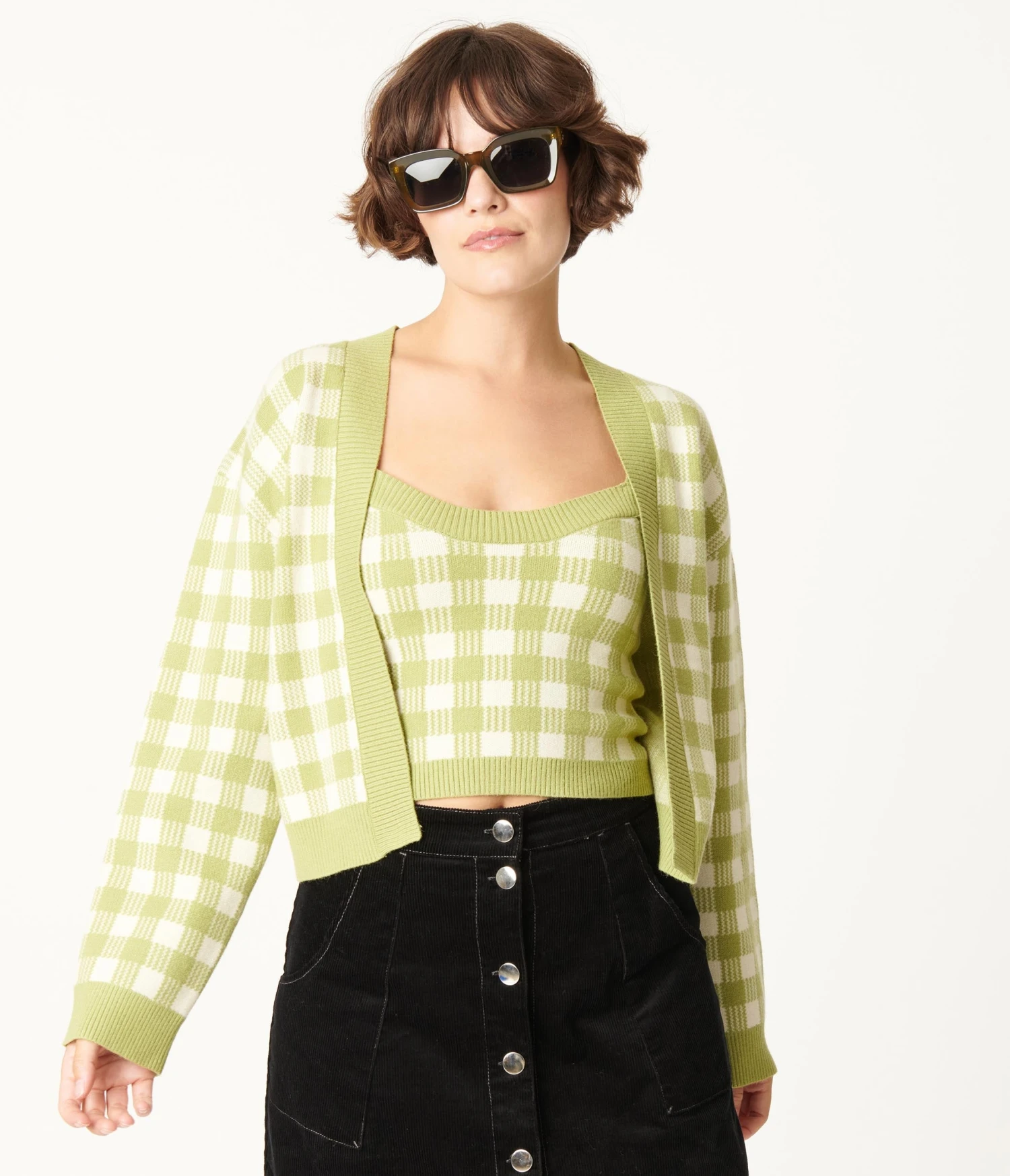 Be the first to review “Green Gingham Crop Top & Cardigan Sweater Set” Cancel reply