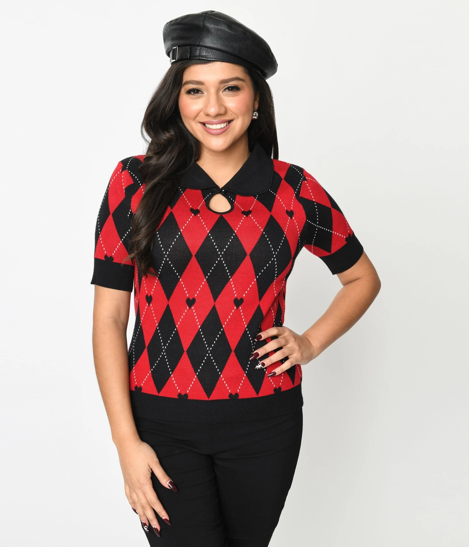 Be the first to review “Hell Bunny Red & Black Heart Argyle Amy Knit Top” Cancel reply