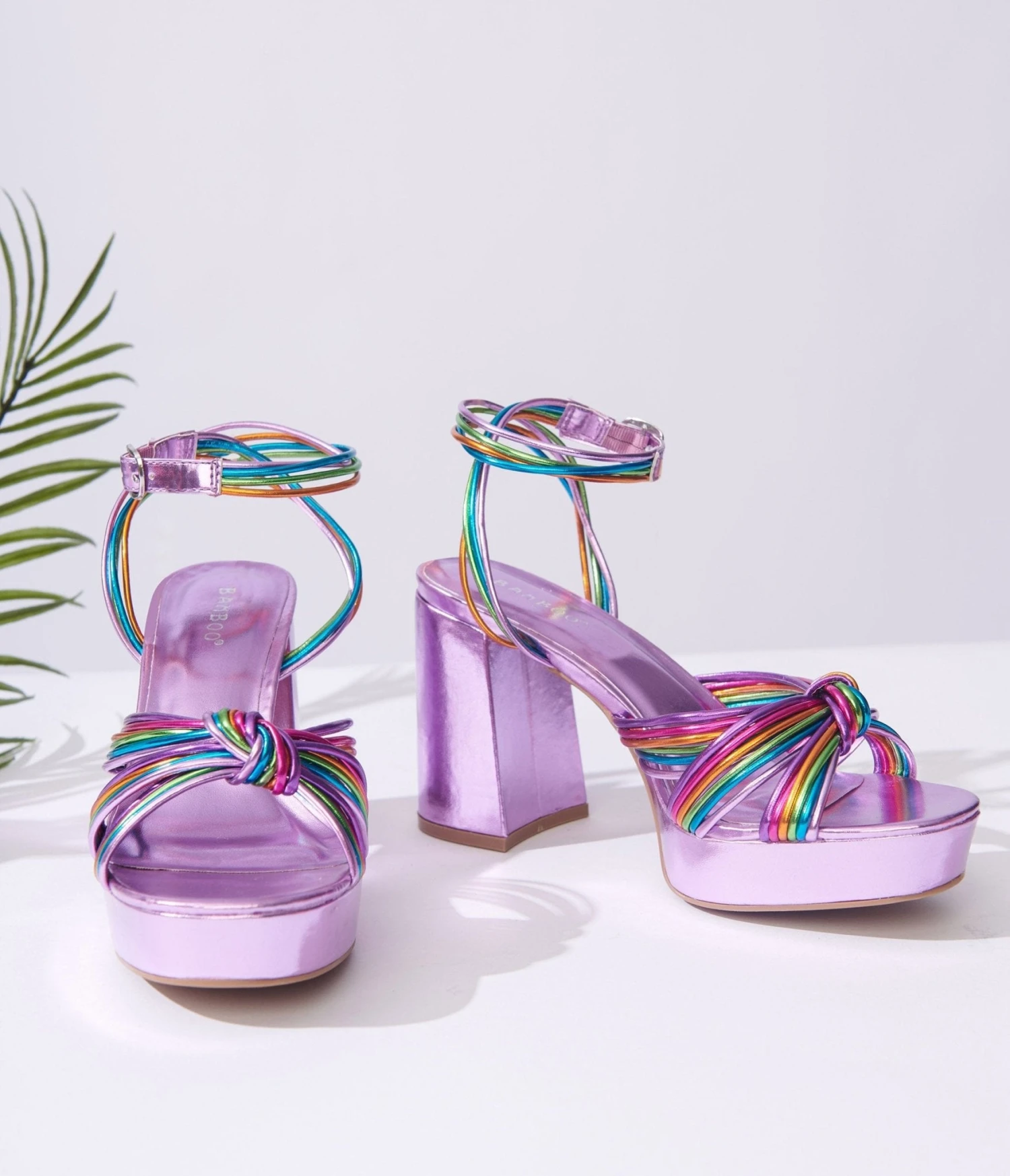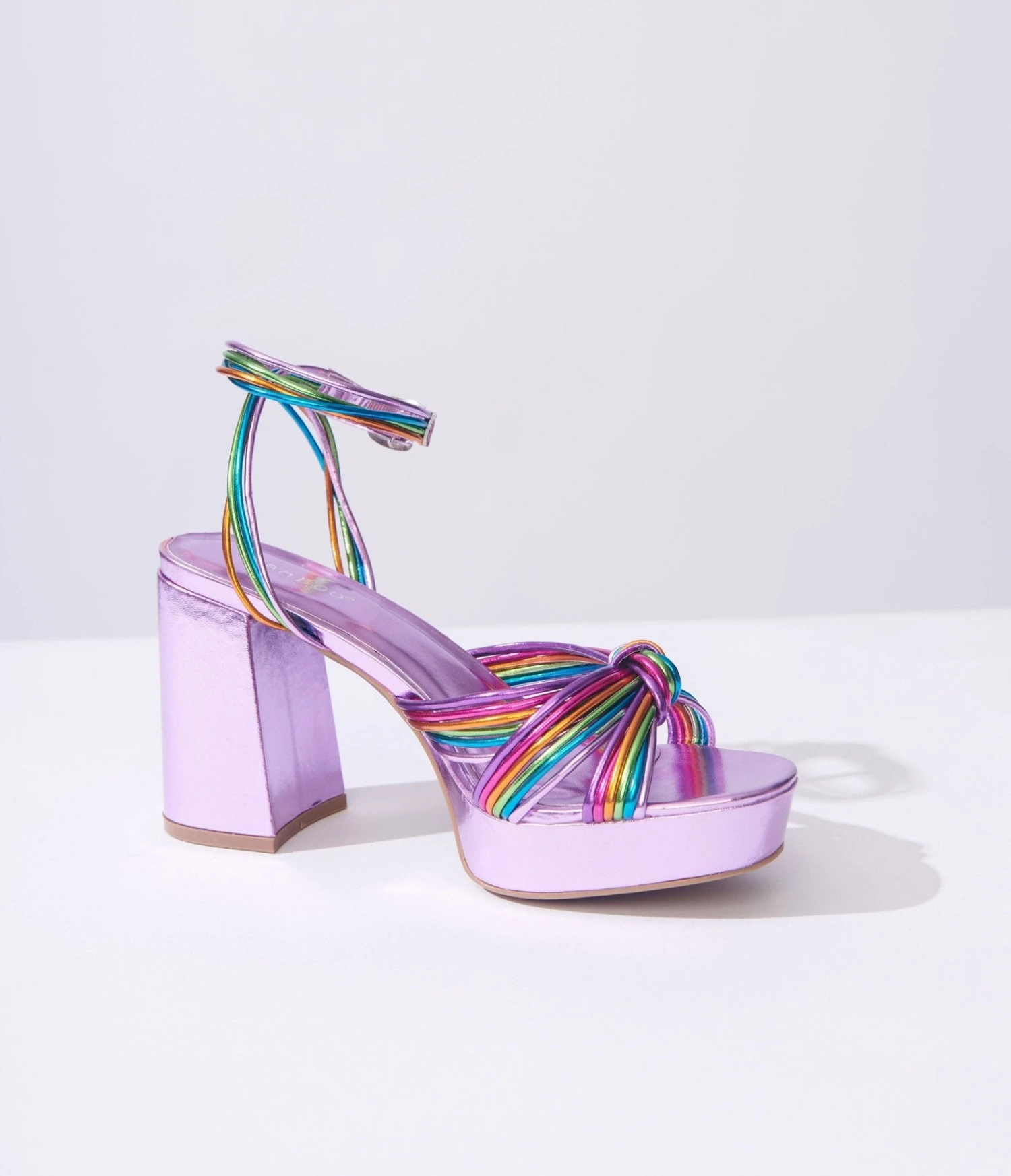 Be the first to review “Metallic Purple & Rainbow Strap Platform Heels” Cancel reply
