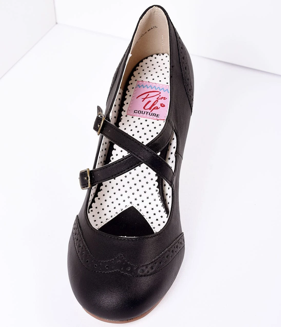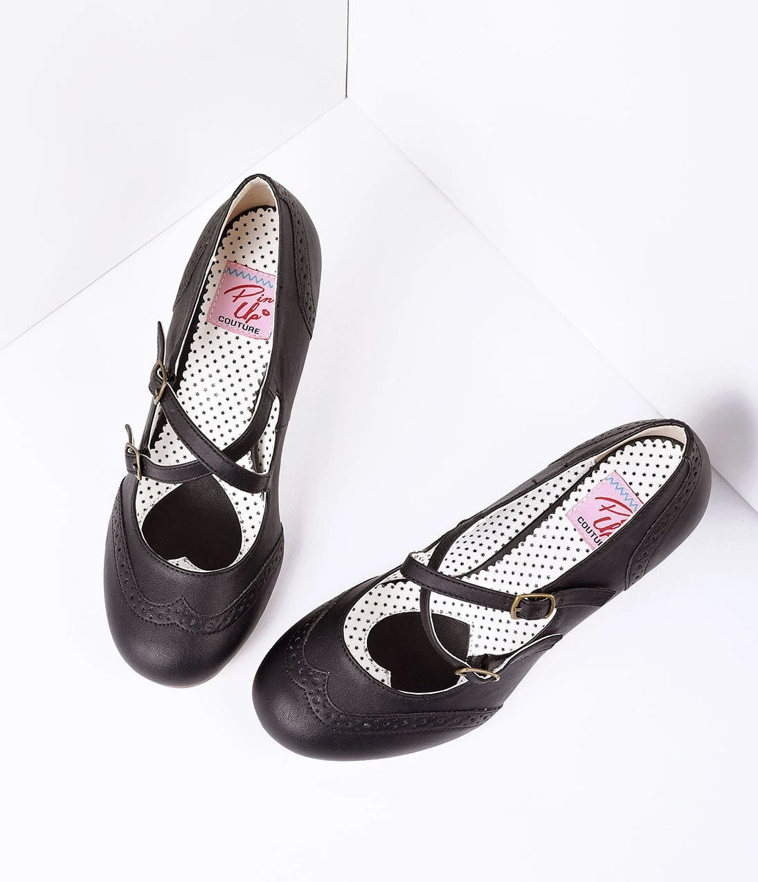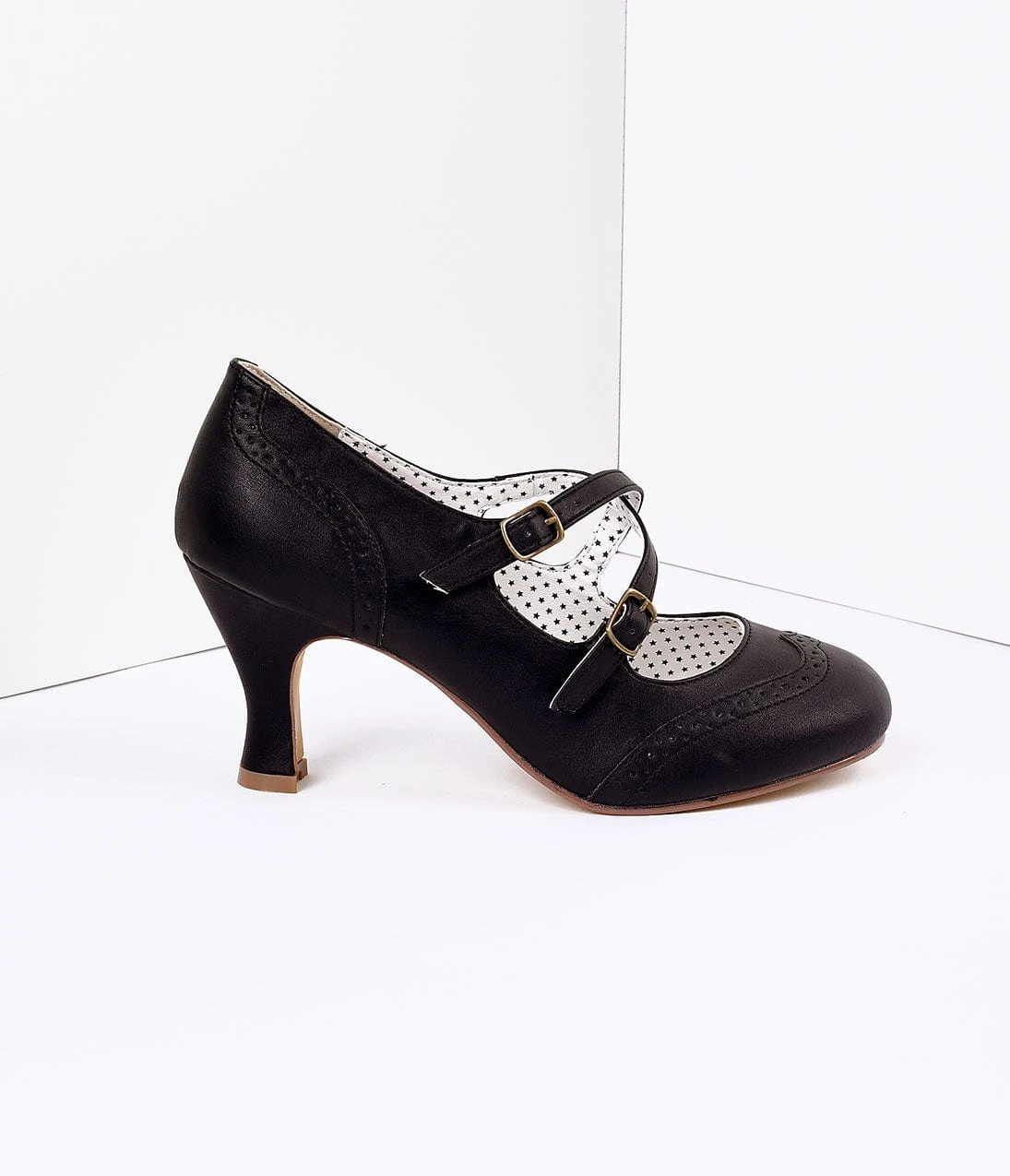 Look your best and walk in style with these black faux leather mary-jane style strap shoes! A super cute pair tha come in 3 inch heels! The unique double strap design creates a criss cross look that buckles on the outer side. The buckles also come with a stretchy gorde for any extra space you may need. A ravishing detail found throughout the toe completes the design!