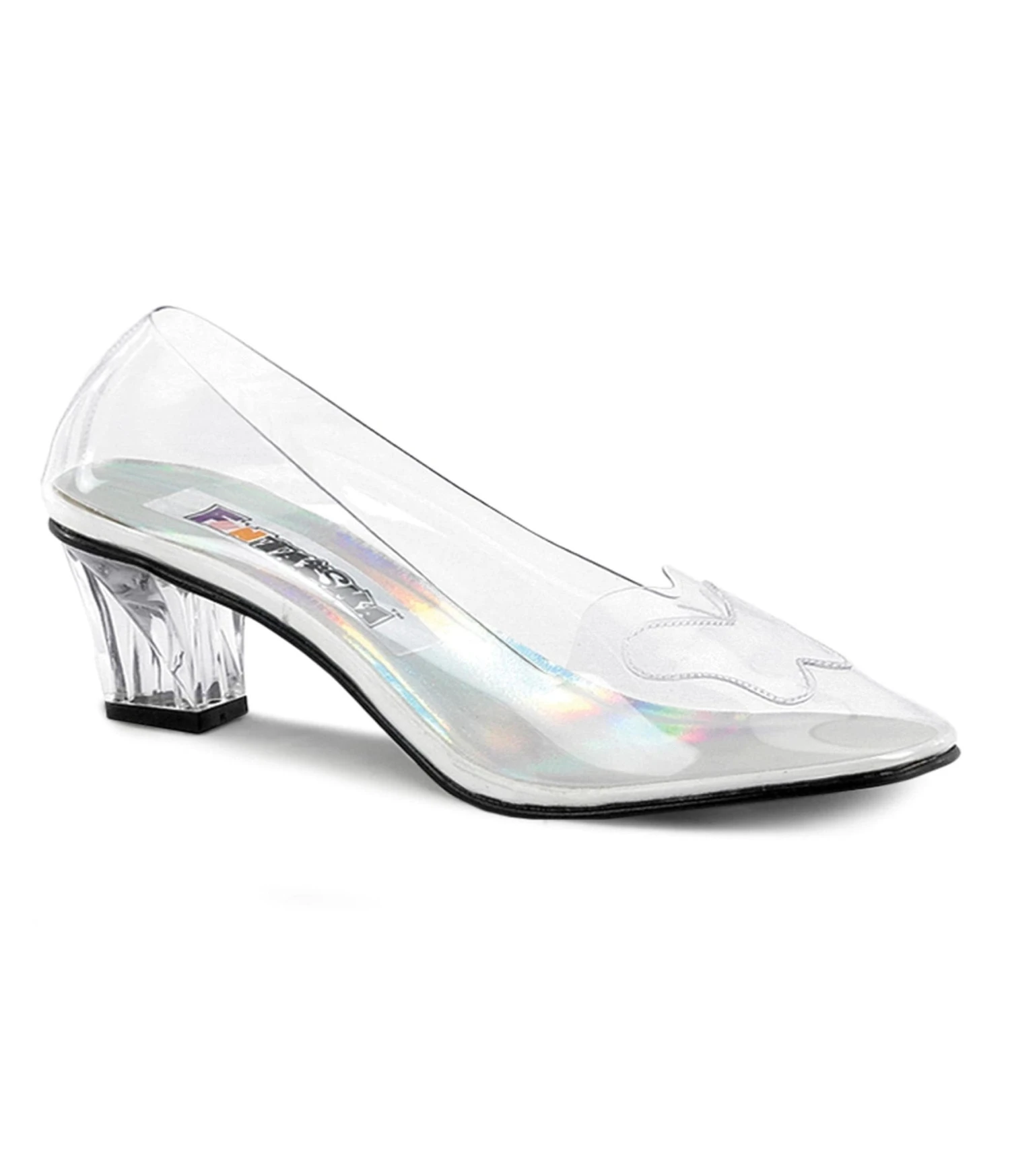 Sparkle and shine with these sweet pointed toe kicks, crafted in a clear vinyl and embellished with a clear butterfly accent on the top. Complete with a cushion insole and clear heel!