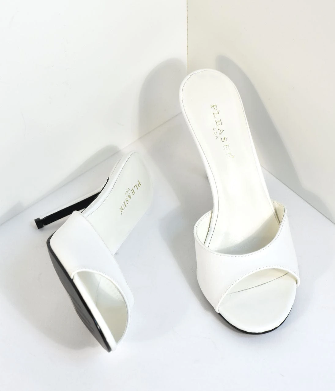 Be the first to review “PLEASER White Matte Leatherette Peep Toe Slip On Heels” Cancel reply