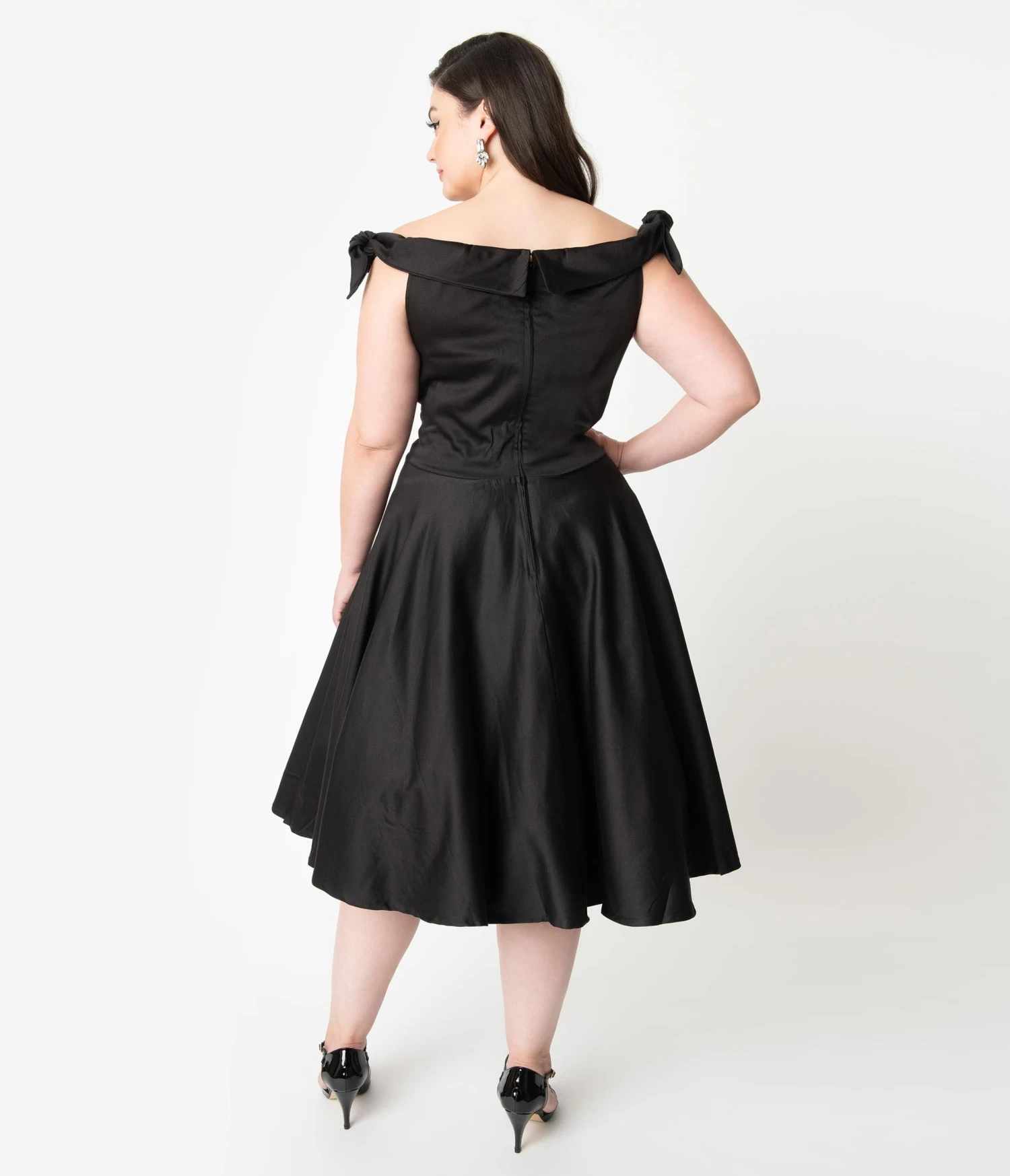 Be the first to review “Plus Size 1950s Style Black Off Shoulder Mona Swing Dress” Cancel reply