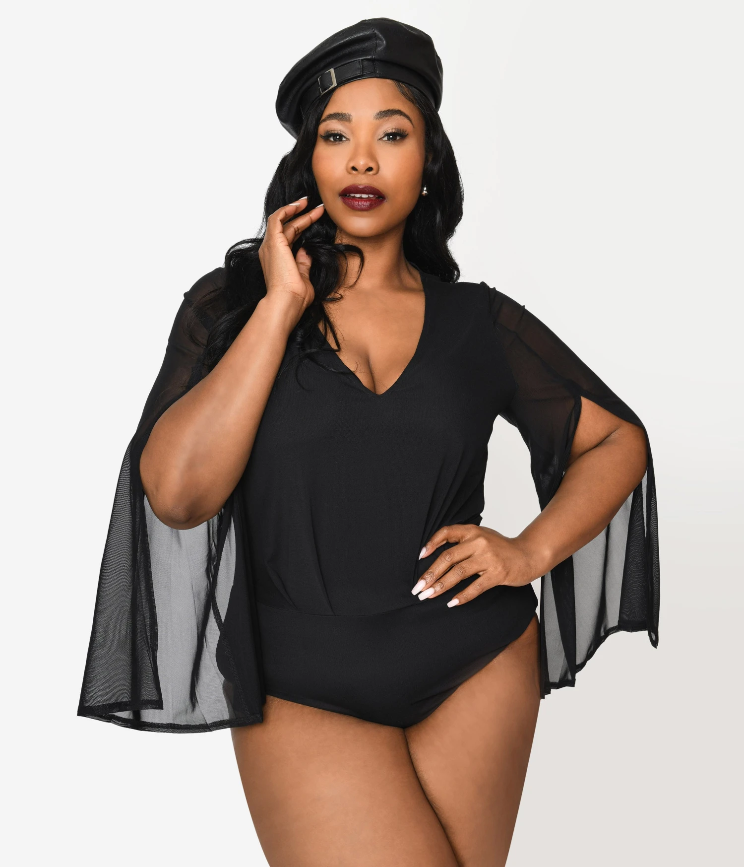 Be the first to review “Plus Size Black Mesh Cape Knit Bodysuit” Cancel reply