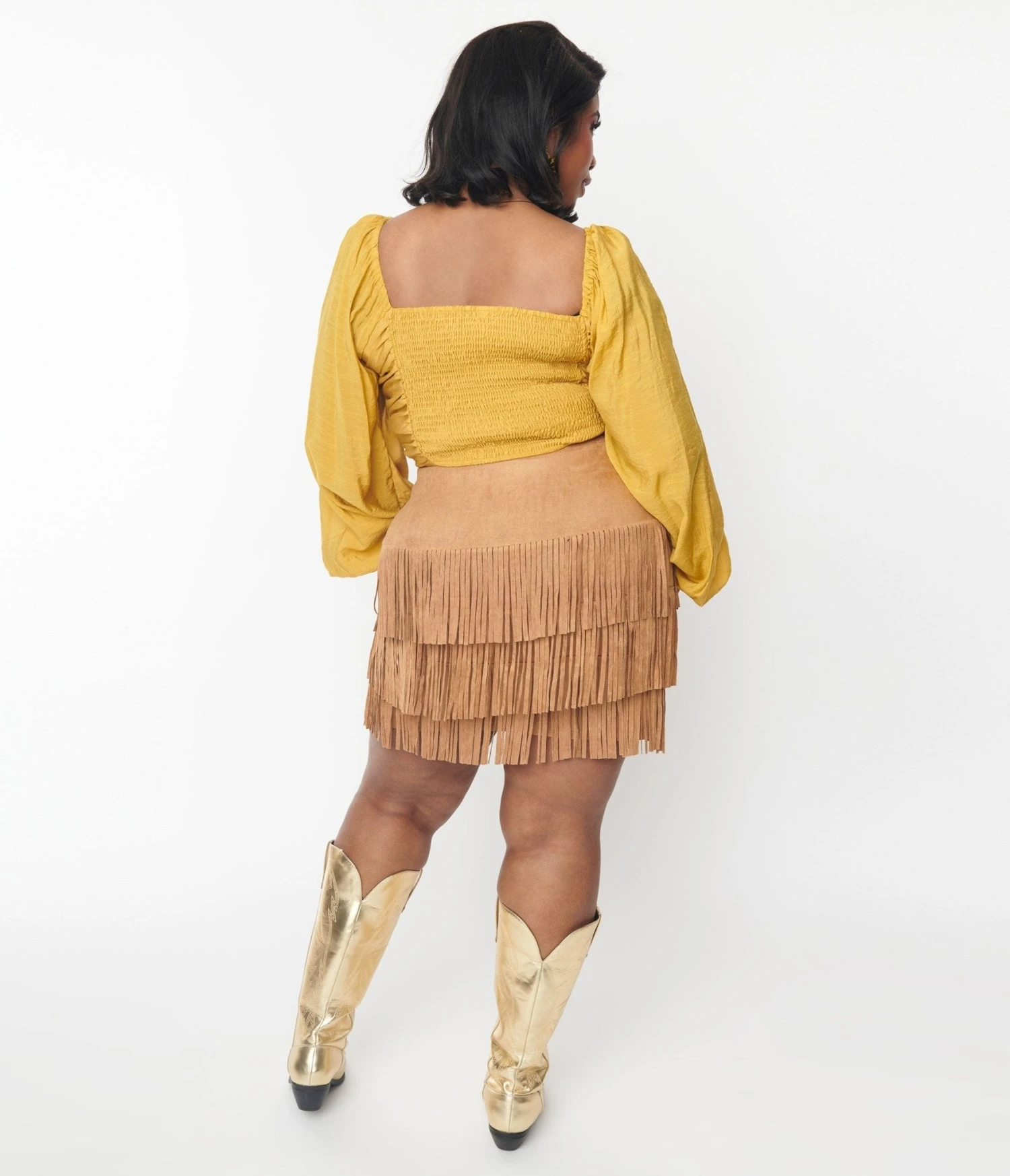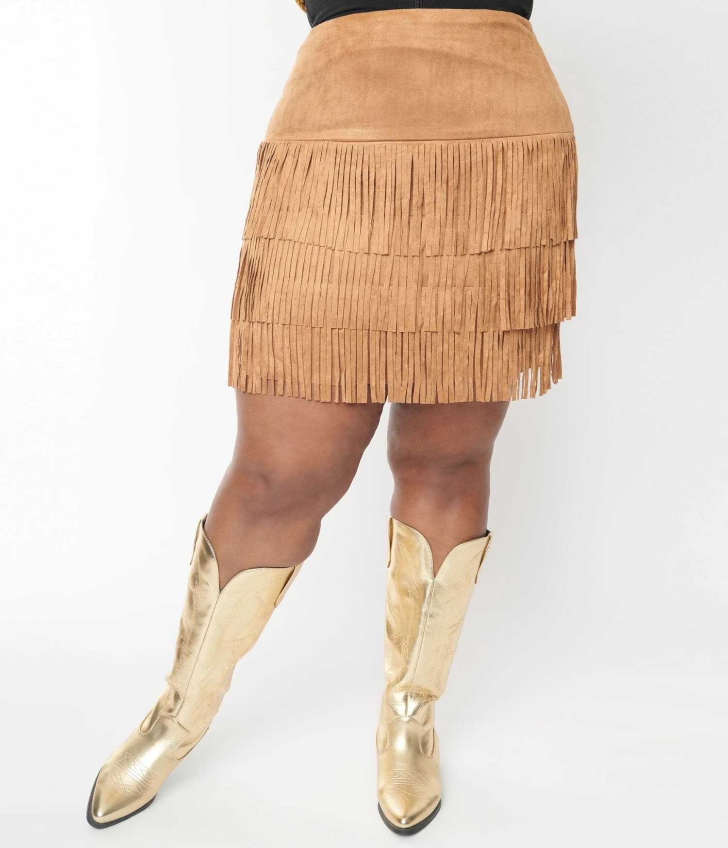 Be the first to review “Plus Size Brown Suede Tiered Fringe Skirt” Cancel reply