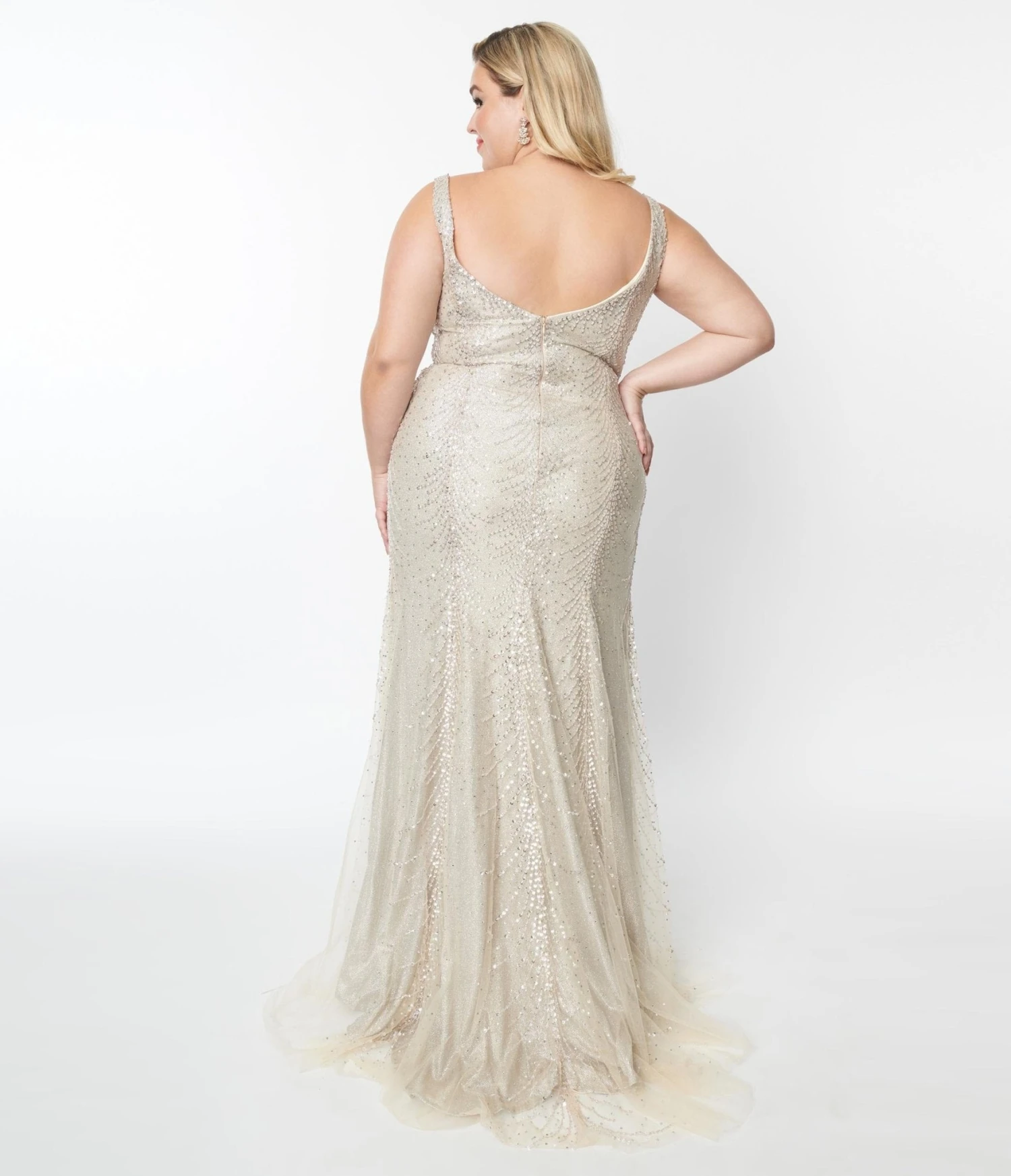 Be the first to review “Plus Size Champagne Beaded Deco Harlow Wedding Dress” Cancel reply