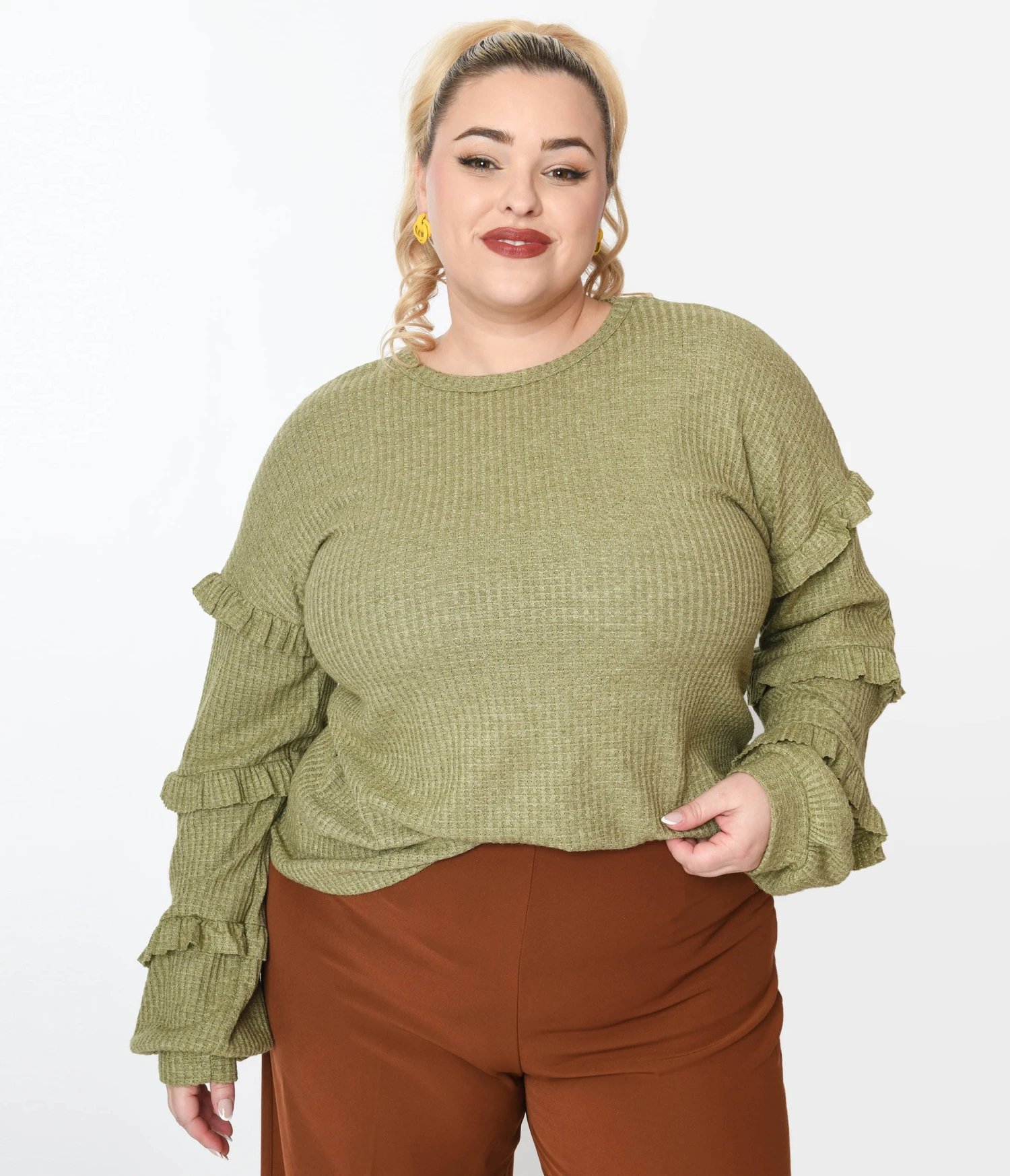Be the first to review “Plus Size Olive Green Ruffle Trim Ribbed Pullover Sweater” Cancel reply