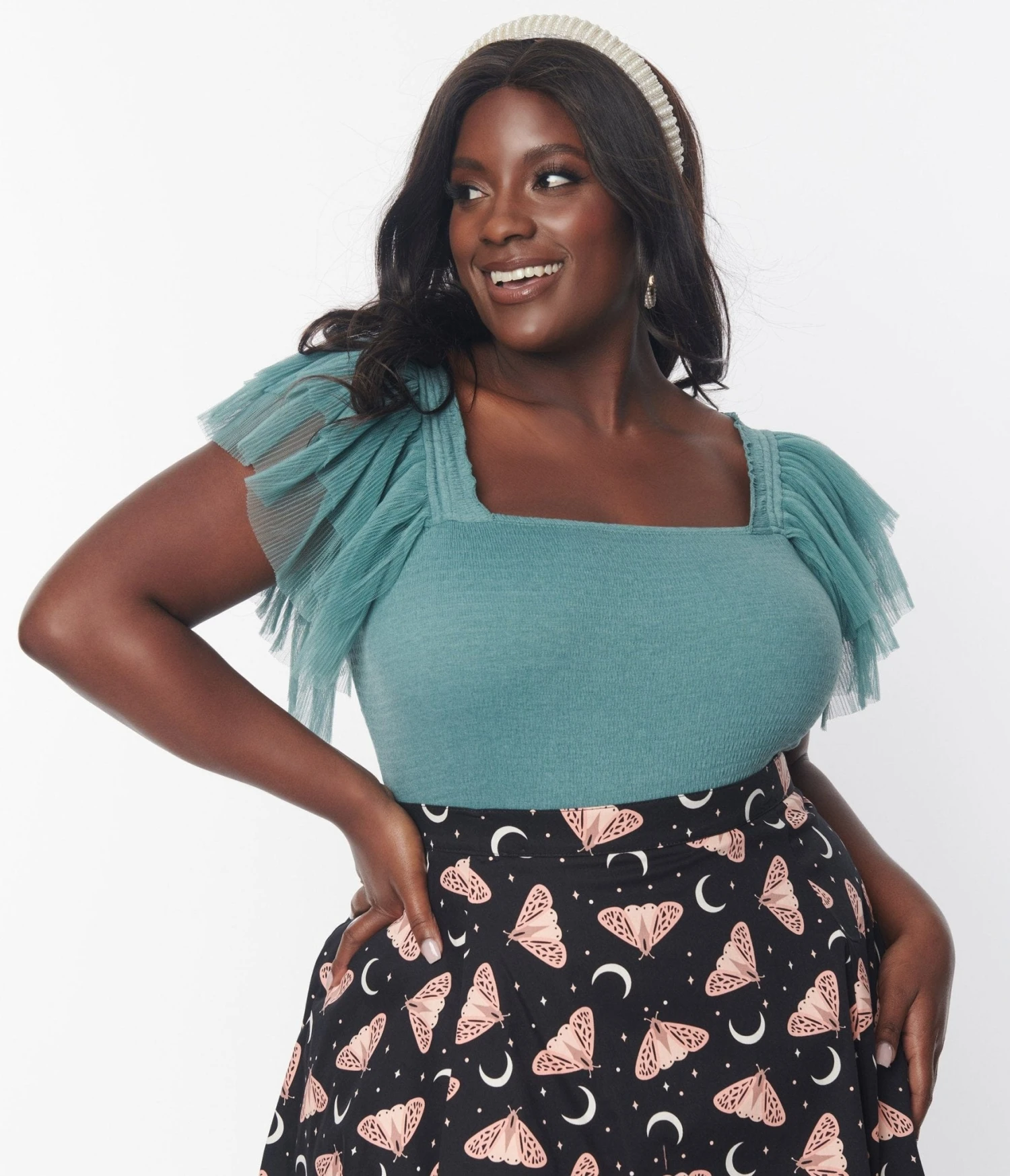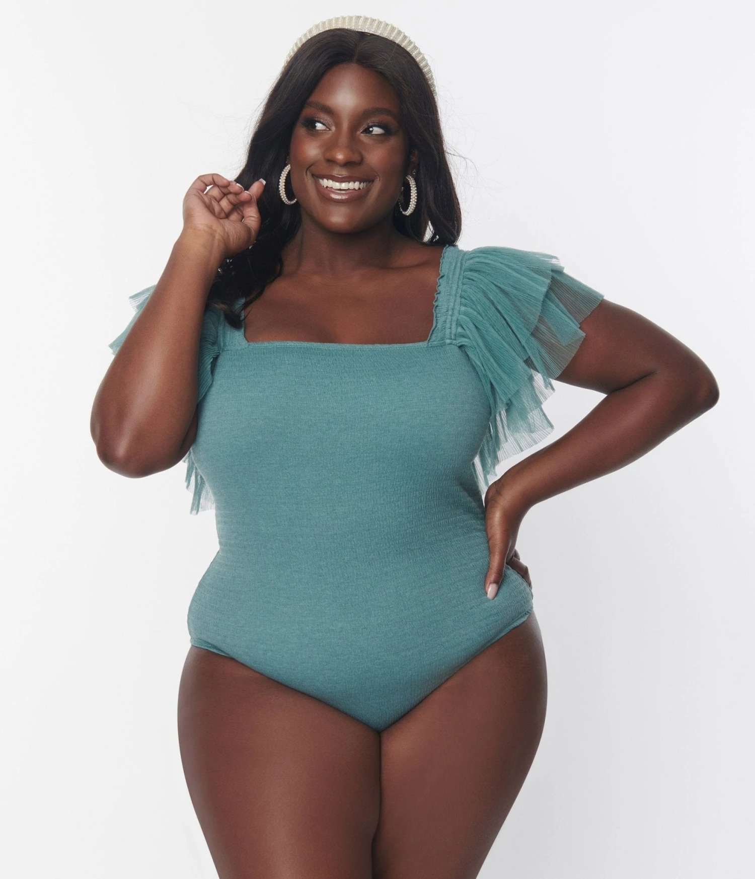 Be the first to review “Plus Size Teal Mesh Tiered Sleeve Bodysuit” Cancel reply