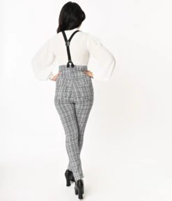 Unique Vintage Light Blue Glen Plaid Moorehead Suspender Pants
