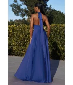 Cinderella Divine Royal Blue Satin Convertible Halter Evening Gown