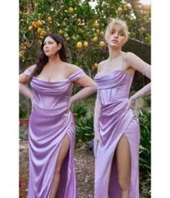Cinderella Divine Mauve Satin Off The Shoulder Corset Bridesmaid Gown