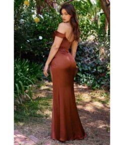 Cinderella Divine Sienna Satin Off The Shoulder Corset Bridesmaid Gown
