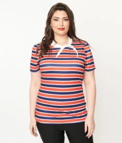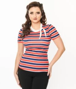Unique Vintage Navy & White Pin Dot Monroe High Waist Swim Bottom