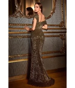 Cinderella Divine Olive Satin Off The Shoulder Corset Bridesmaid Gown