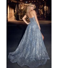 Cinderella Divine Smoky Blue Ruched Satin Mystique Prom Gown
