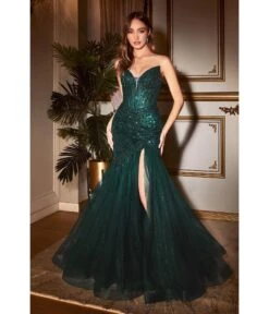 Cinderella Divine Emerald Glitter Strapless Corset Prom Gown