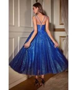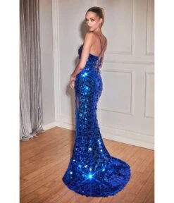 Cinderella Divine Royal Blue Glitter Satin Sultry Fitted Evening Dress