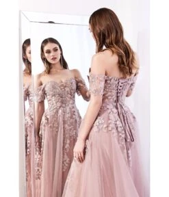 Cinderella Divine Mauve Beaded Lace Ballerina Homecoming Dress