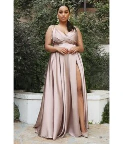 Cinderella Divine Sand Satin Draped Cowl Back Bridesmaid Dress