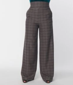 Unique Vintage Charcoal Windowpane High Waist Pants