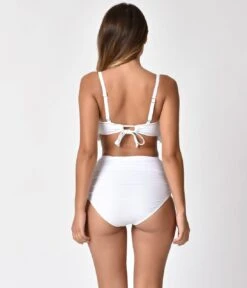 Unique Vintage Tropical Print & Red Hibiscus Monroe High Waist Swim Bottom