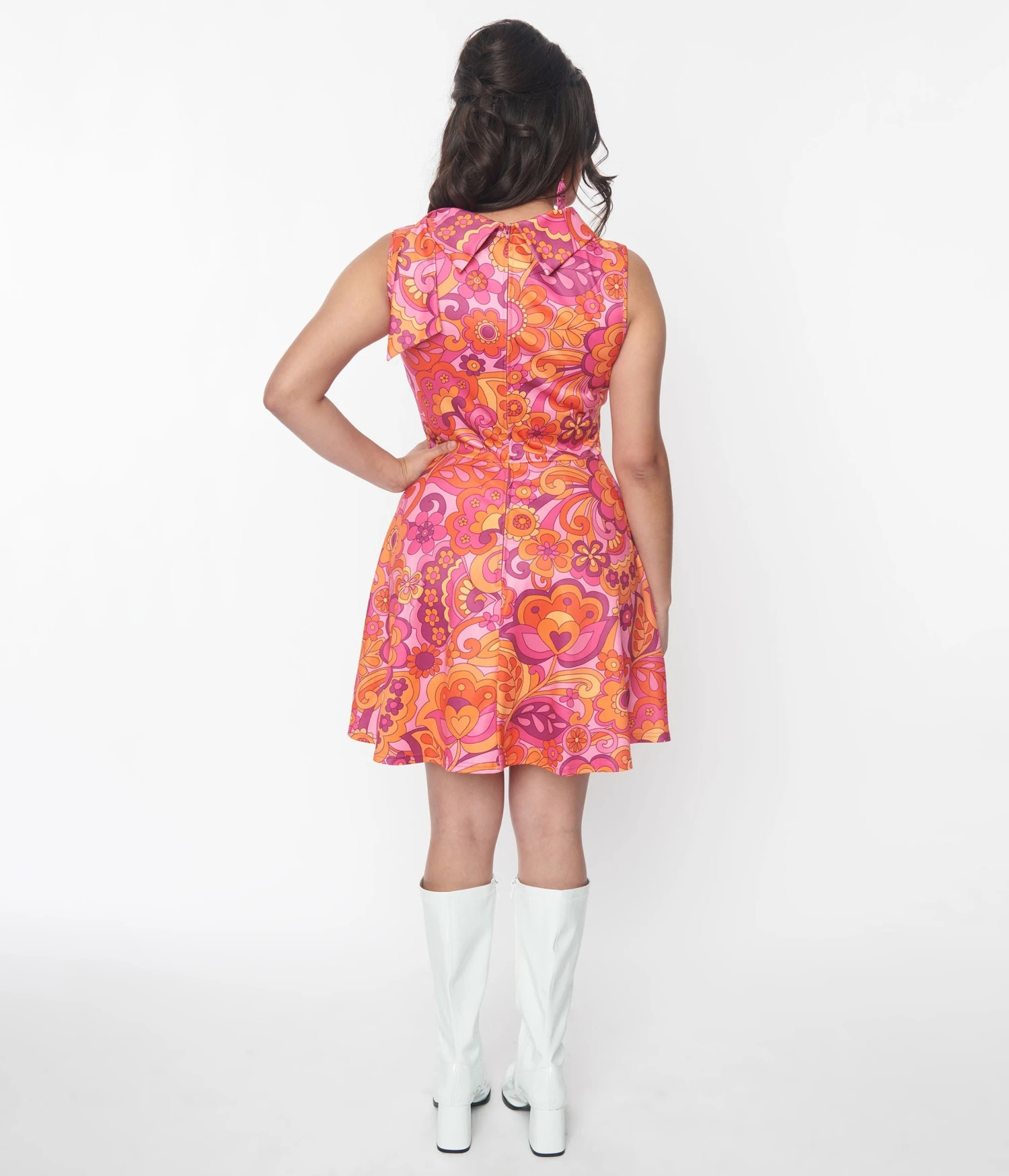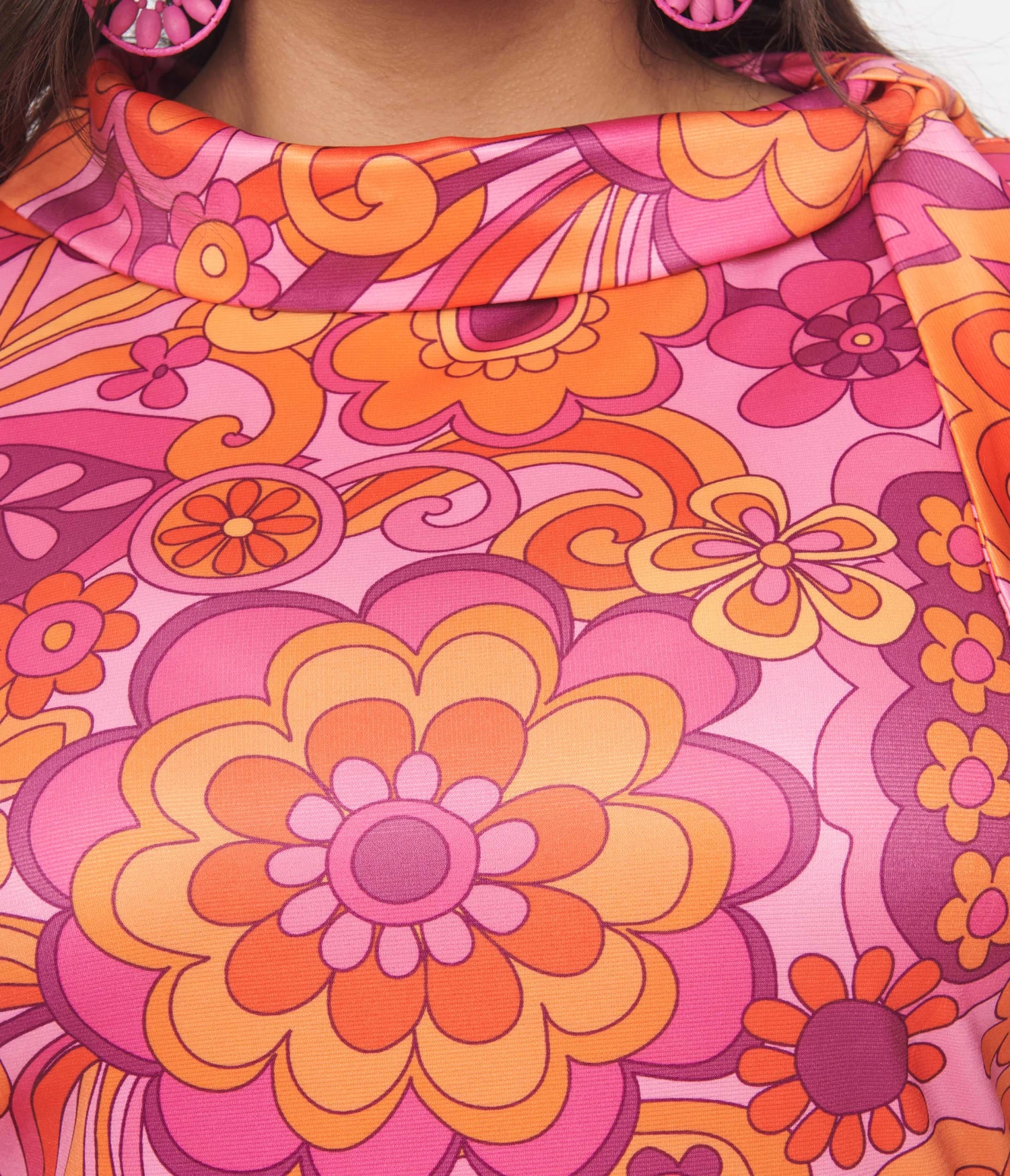 This adorable dress takes inspiration from the swinging 1960s, featuring a pretty pink hue that will make you stand out from the crowd. The mod floral print adds a playful touch, while the mock turtleneck gives it a classy vibe. With its flattering fit & flare silhouette and back zipper closure, this dress is designed to enhance your curves beautifully. Plus, there are even handy side pockets for all your essentials! It’s finished off with a self-tie neck detail for that extra touch of charm.