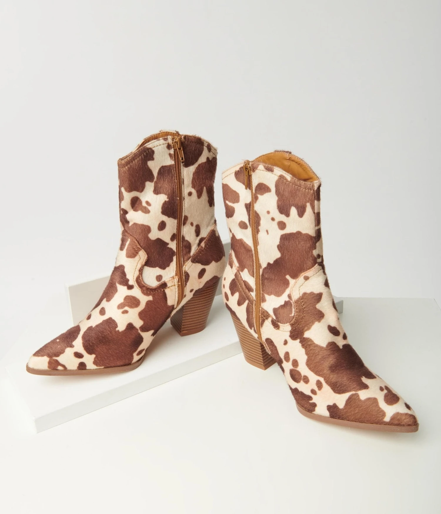 Be the first to review “Tan & Cream Cow Print Calf Hair Boot” Cancel reply
