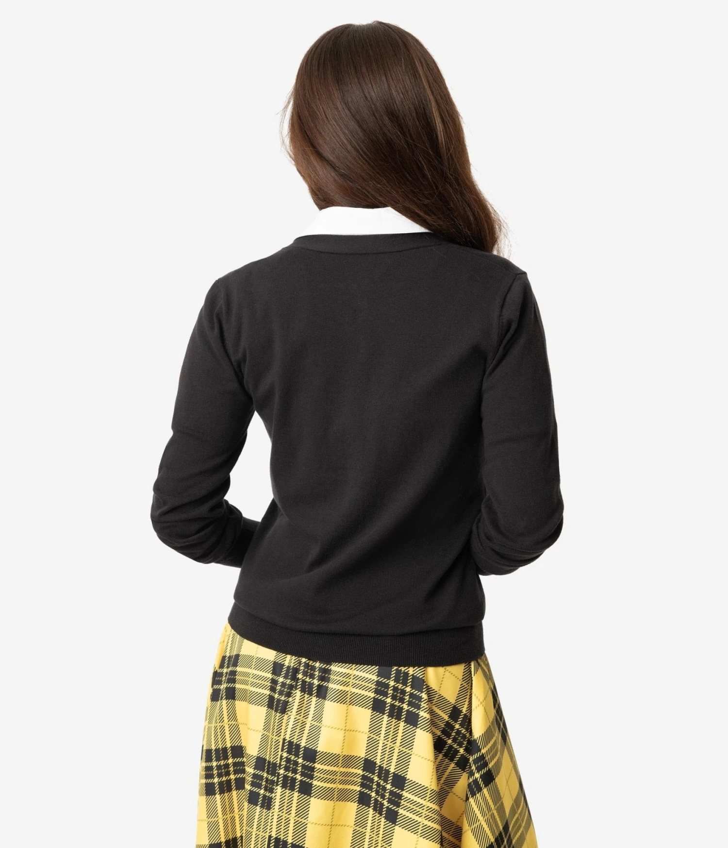 Rep your house, gals! Whether your team captain or a passionate supporter, this gorgeous black cardigan from Unique Vintage shows off your house pride in style. The Hannah Cardigan is crafted in a soft knit, while the modest V-neckline is centered and secured with a button up front, complete with long sleeves to keep you warm and comfortable. With stay in place hem and cuffs, a bold yellow flocked H letterman patch sits on the front, letting everyone know you embody the virtues of patience, loyalty, and fair play. Don’t wait around for a sorting hat to pick your house!