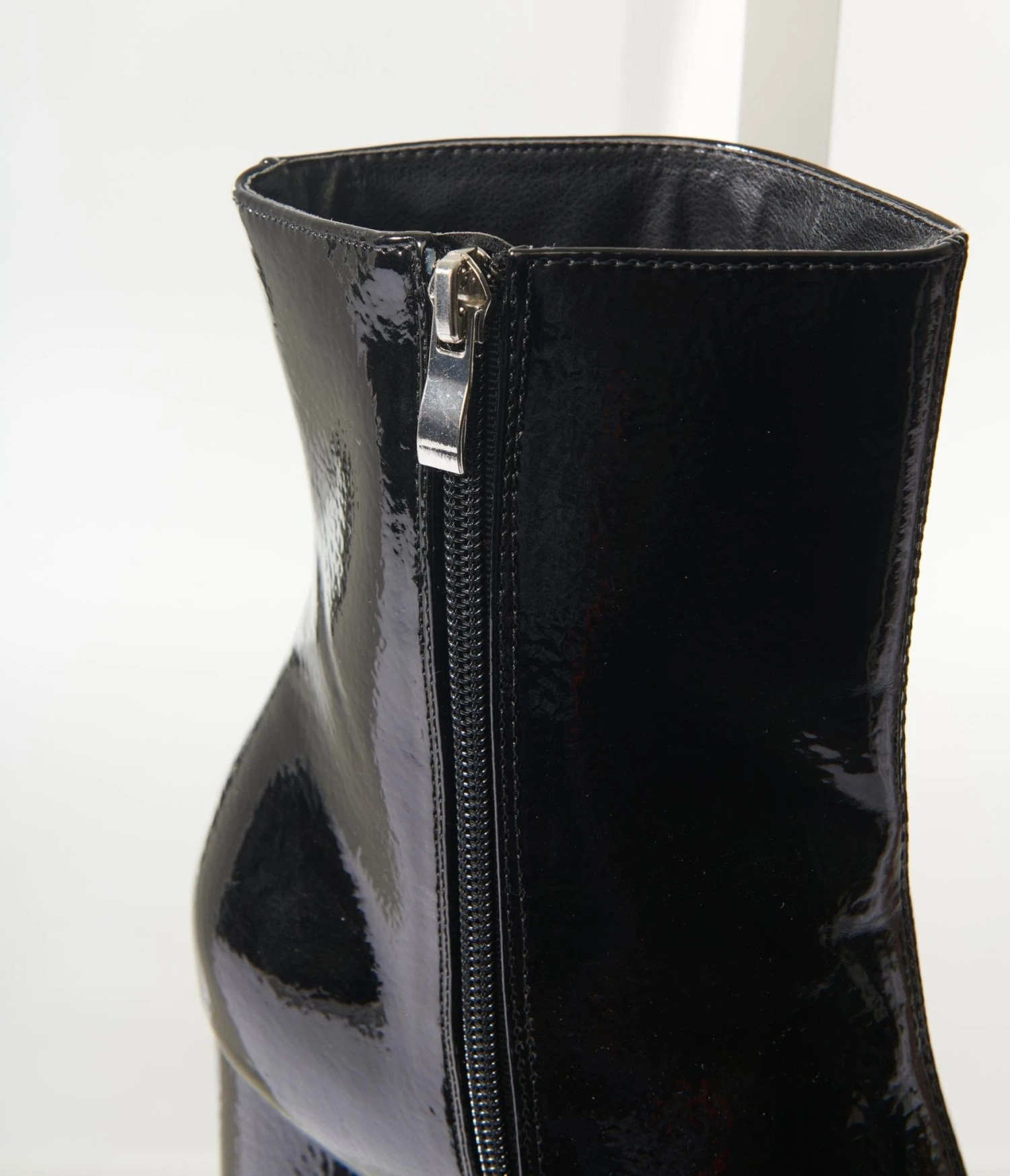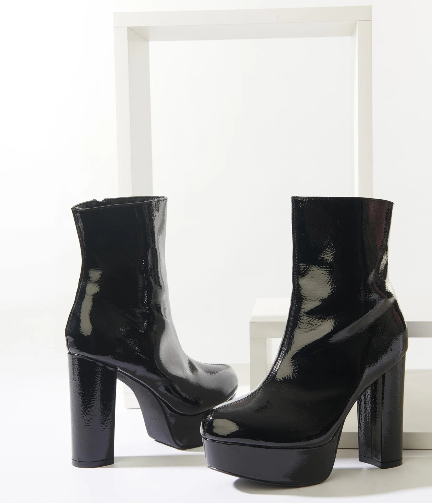 Make your attitude known in these stunning boots from Unique Vintage, crafted in shiny textured black leatherette and boasting a marvelous 2 inch platform and 5 inch block heel. An inner side zipper provides secure wear while the cushion insole lends comfortable wear!