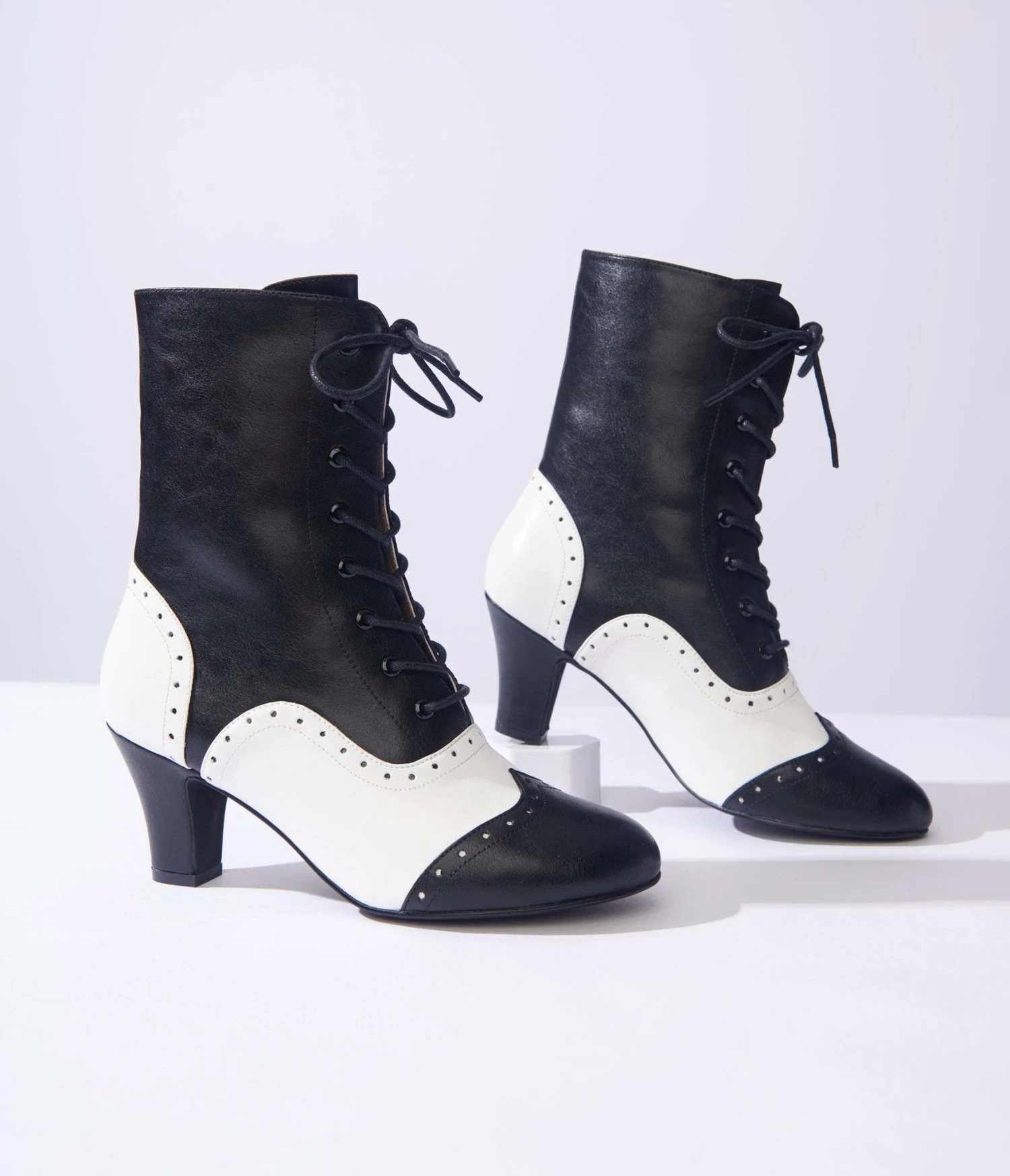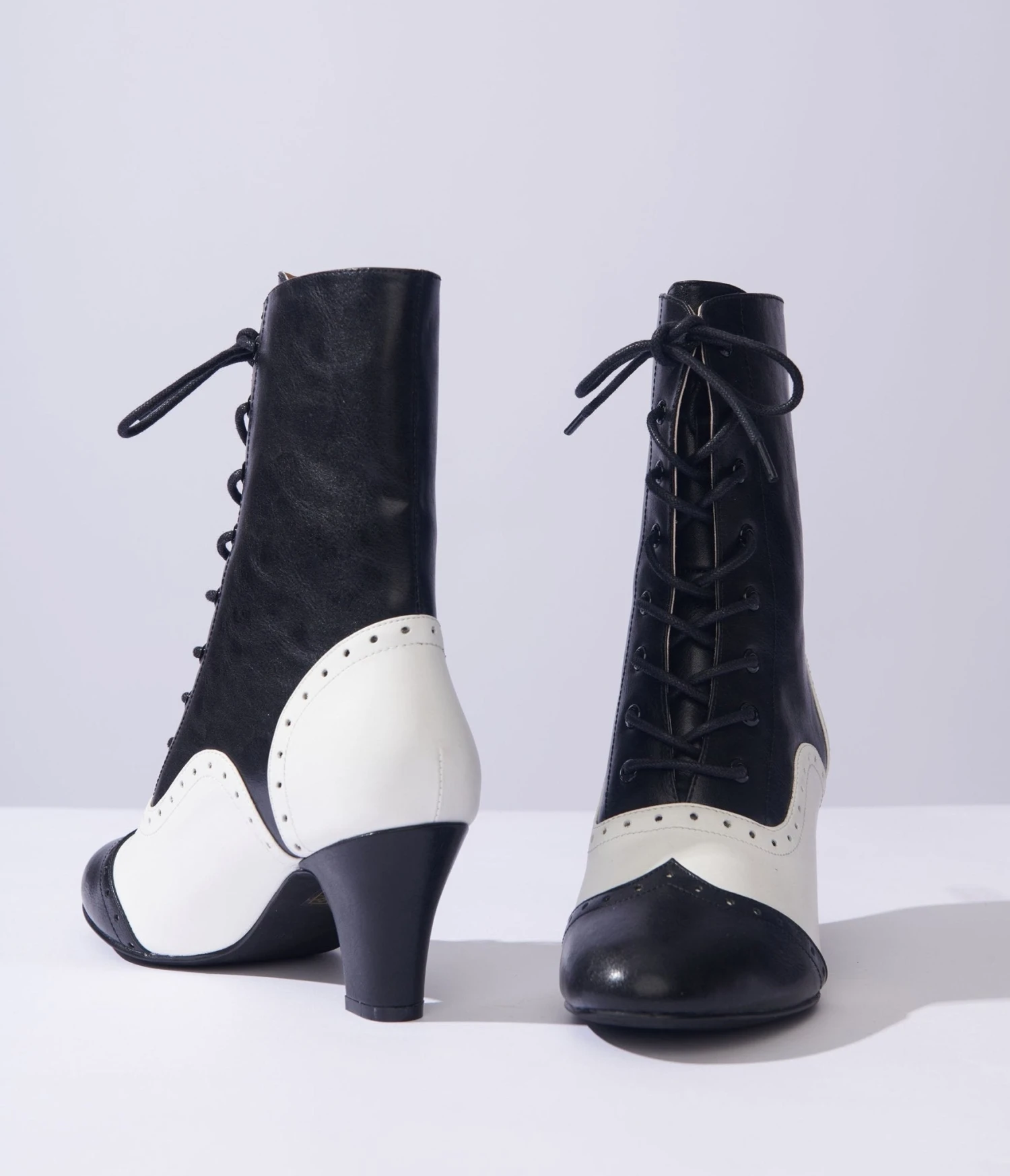 These victorian style boots effortlessly blend vintage charm with contemporary style, allowing you to make a stunning statement wherever you go. Crafted from a lovely black and white leatherette, these boots are an absolute delight for any shoe enthusiast. The intricate lace-up design adds a touch of elegance and ensures a perfect fit every time. Featuring a modest 2.5- inch heel, they offer just the right amount of height to elevate your silhouette without sacrificing comfort. And speaking of comfort, we’ve included a cushion insole to pamper your feet throughout the day!