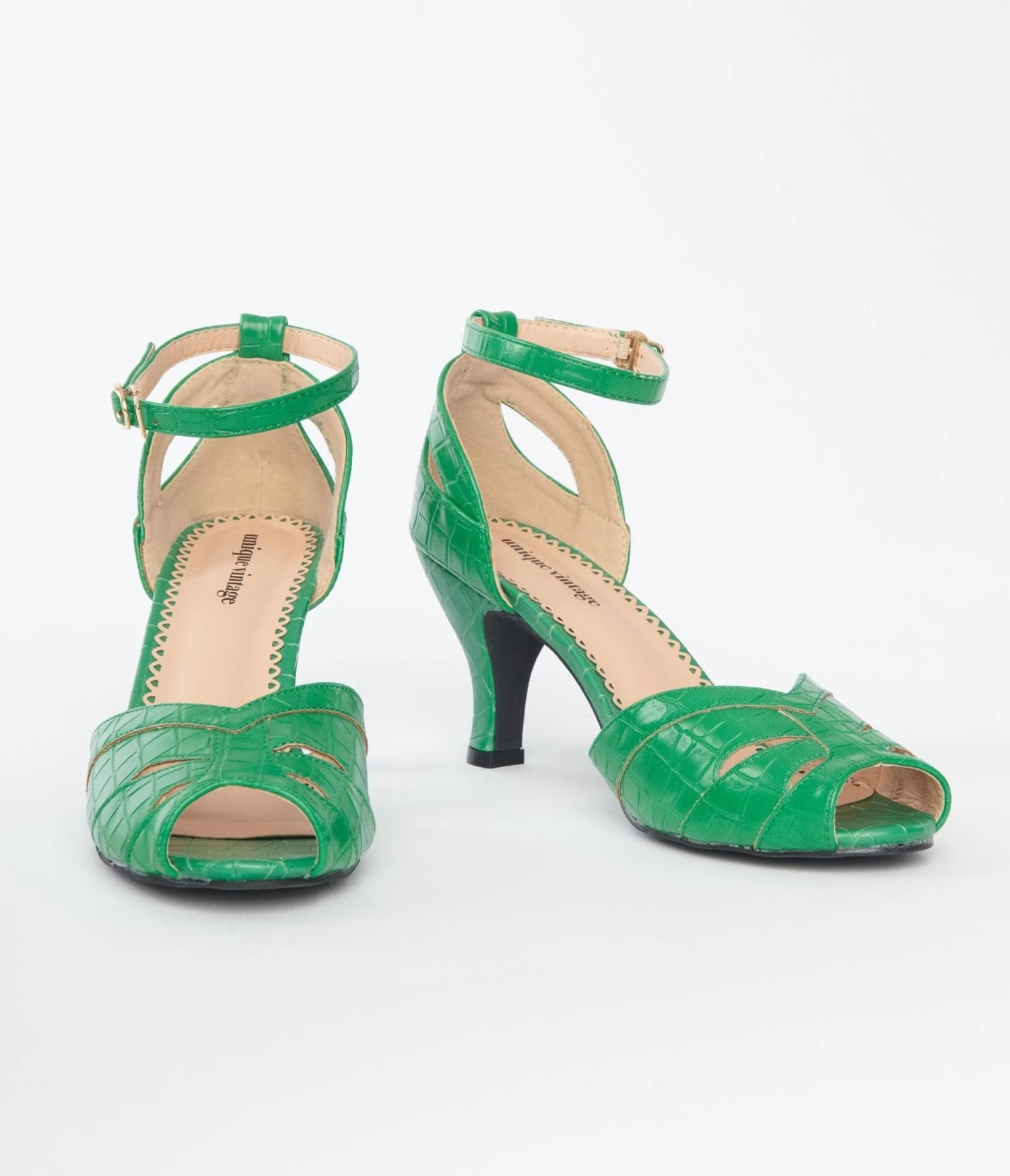 Be the first to review “Unique Vintage Green Crocodile Peep Toe Heels” Cancel reply