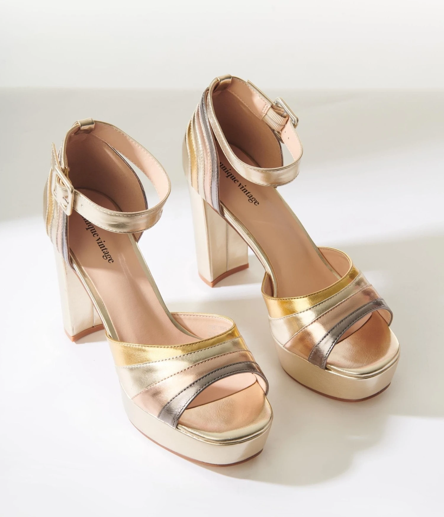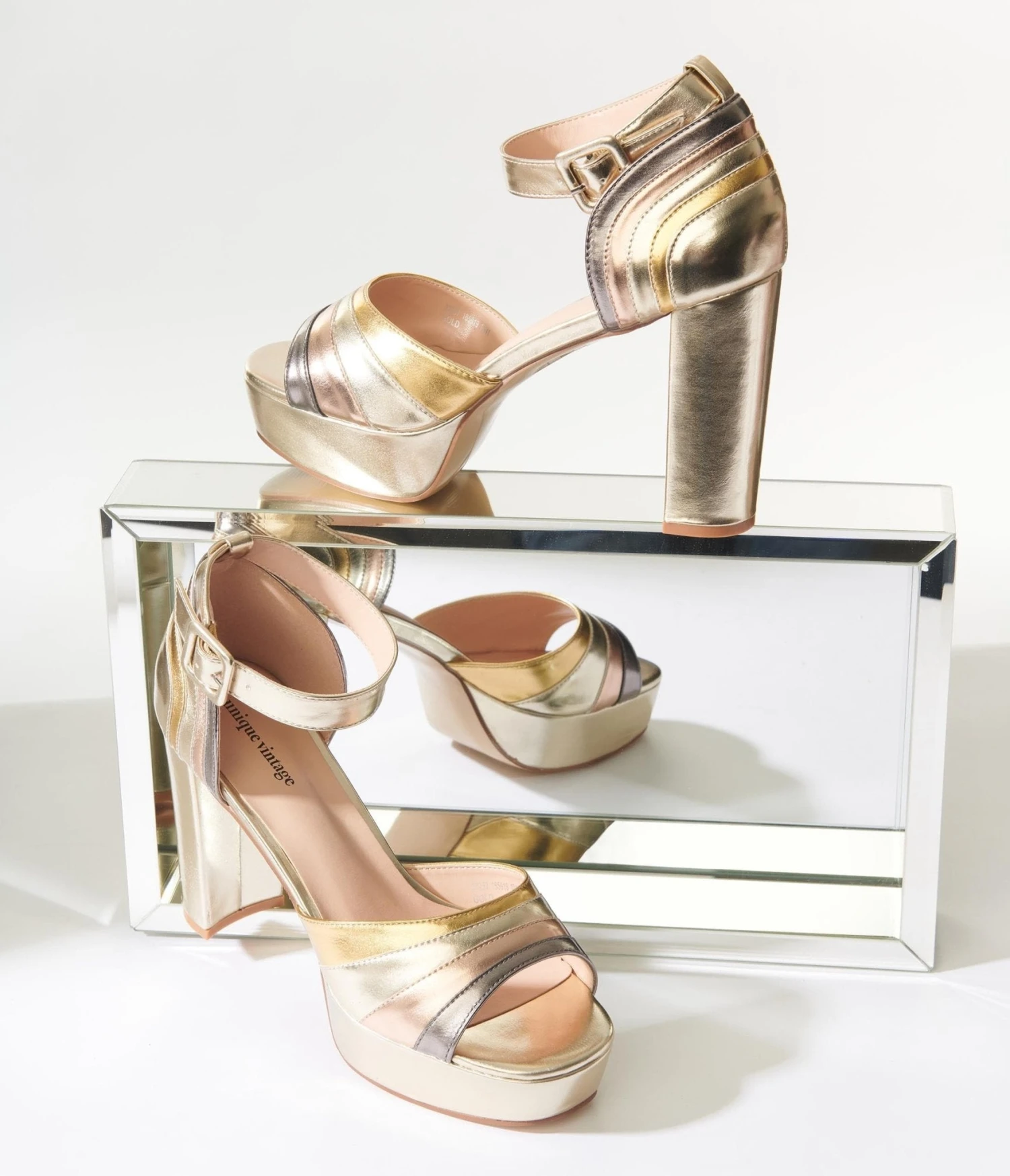 Be the first to review “Unique Vintage Metallic Gold Peep Toe Platform Heels” Cancel reply