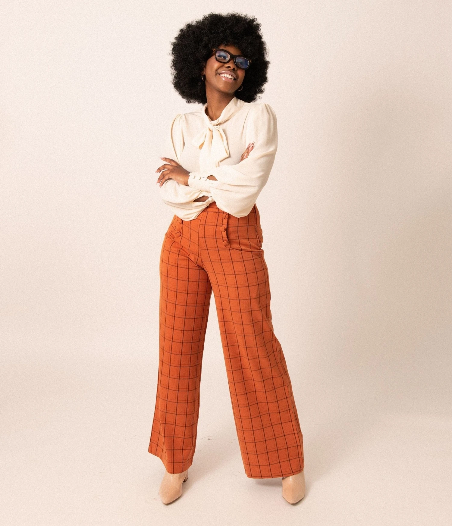 Be the first to review “Unique Vintage Orange Windowpane High Waist Ginger Pants” Cancel reply