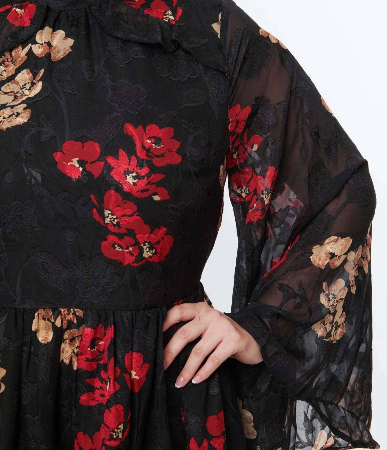 Be the first to review “Unique Vintage Plus Size Black Red & Gold Floral Bell Sleeve Maxi Dress” Cancel reply