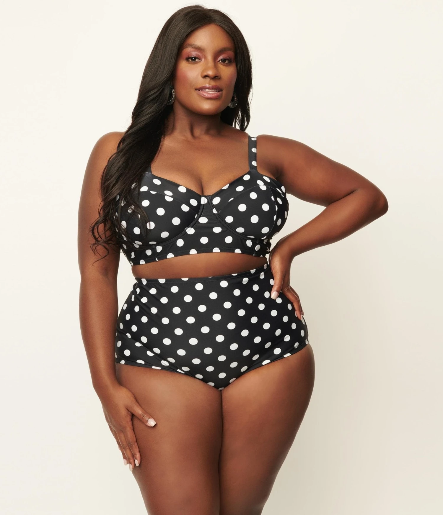 Be the first to review “Unique Vintage Plus Size Black & White Polka Dot High Waist Louise Swim Bottoms” Cancel reply