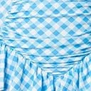This sweet plus size swim bottom features a color block solid blue and a blue and white gingham pattern, dancing with shirring and a ruffle skirt style accent. Complete with a high waist and mesh lining.