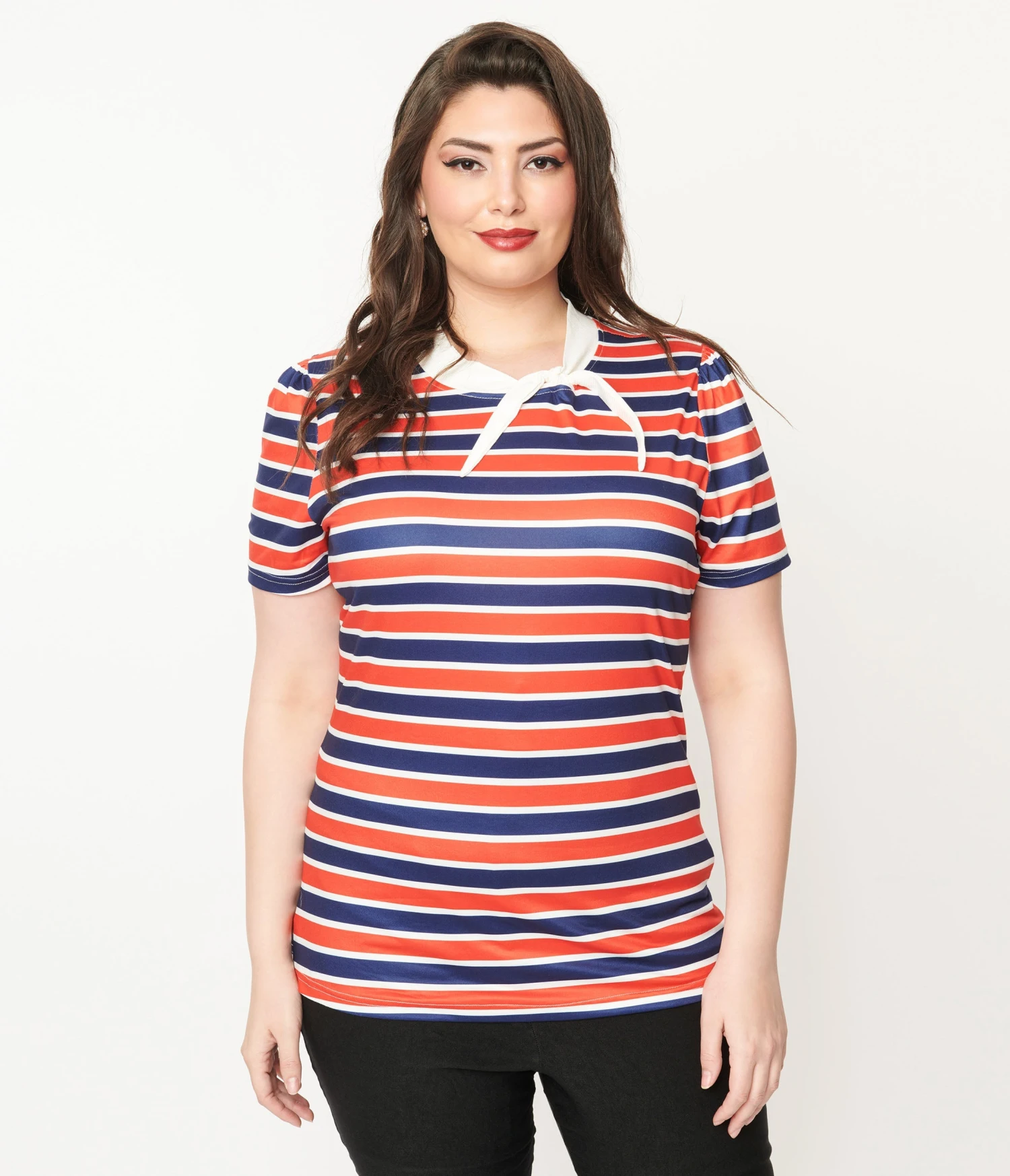 Be the first to review “Unique Vintage Plus Size Navy & Red Striped Bow Sweetie Knit Top” Cancel reply