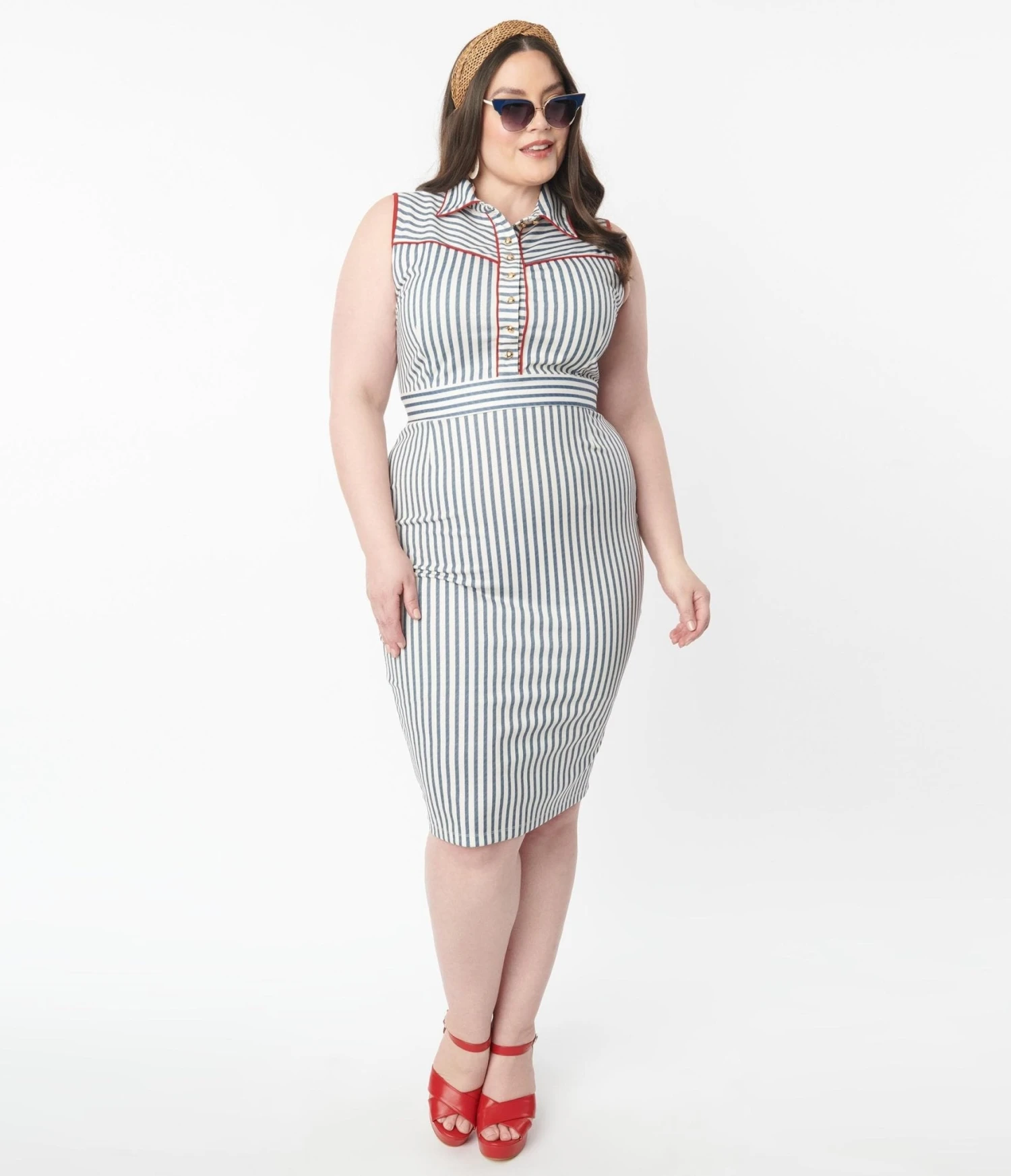 Be the first to review “Unique Vintage Plus Size White & Navy Stripe Wiggle Dress” Cancel reply