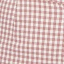 Crafted in a rose and white gingham woven fabric with white accented shoulders. The partial button up front leads to a classic collar while the western style yoke boasts a sleeveless design, while the banded waist is cinched with the button up front.